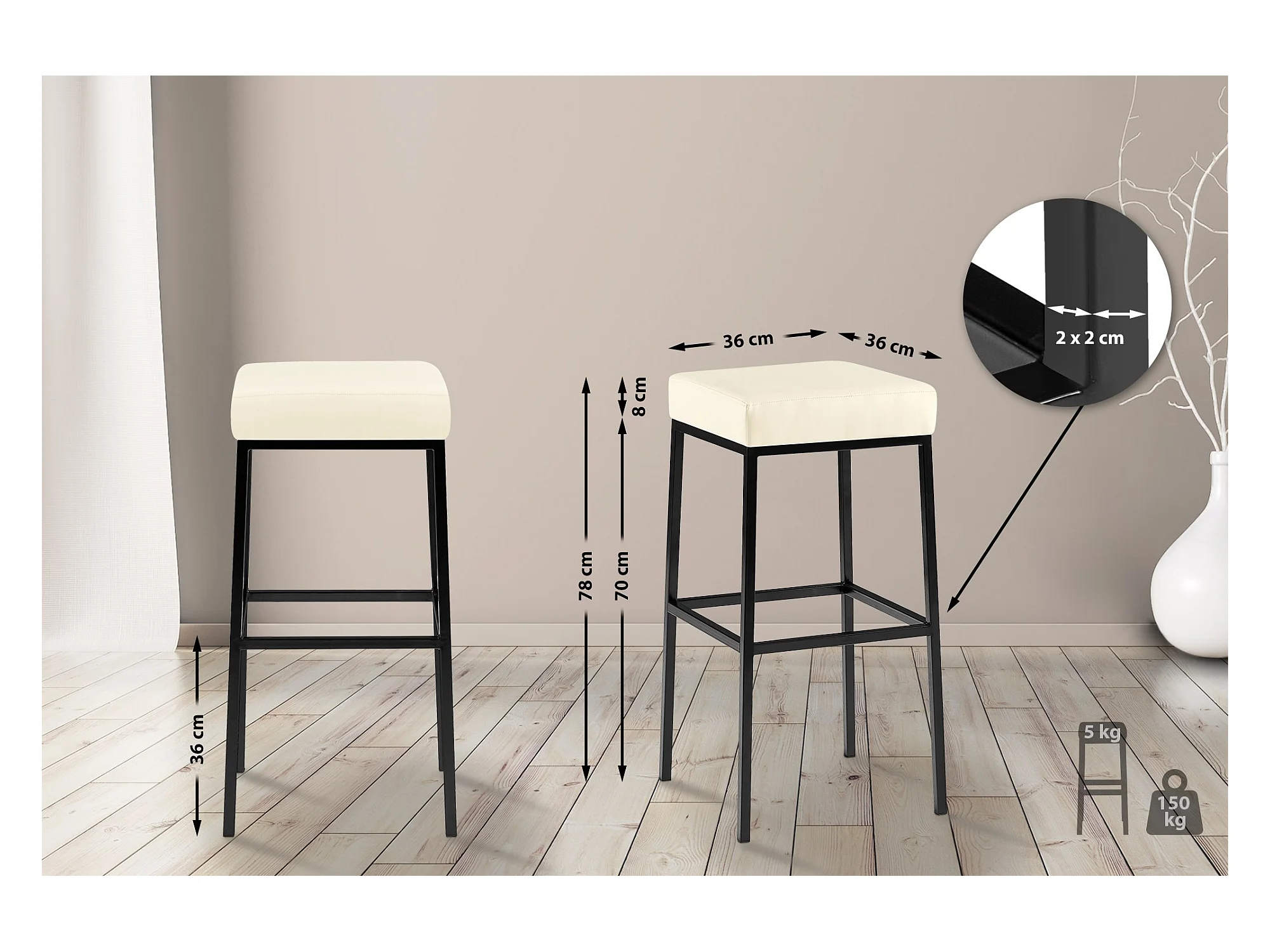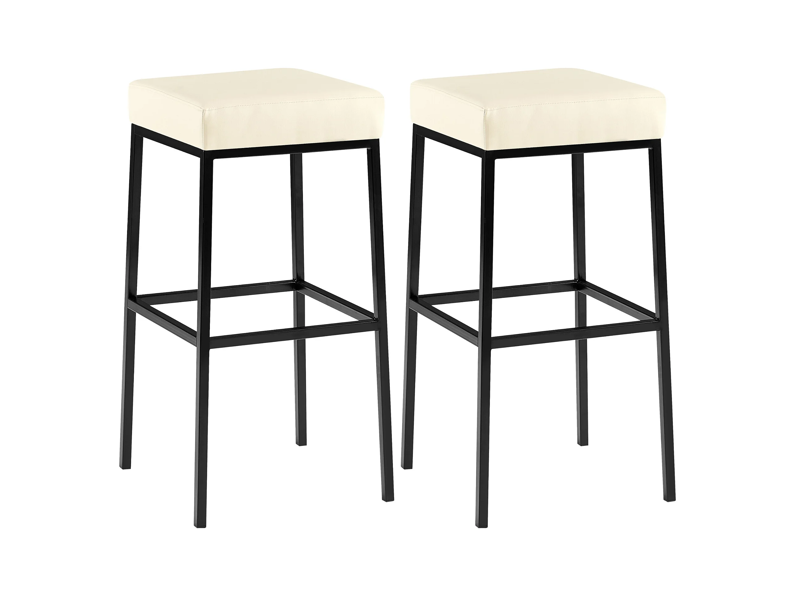 Lot de 2 Tabouret de bar - Similicuir & Noir - Crème - Montreal 80