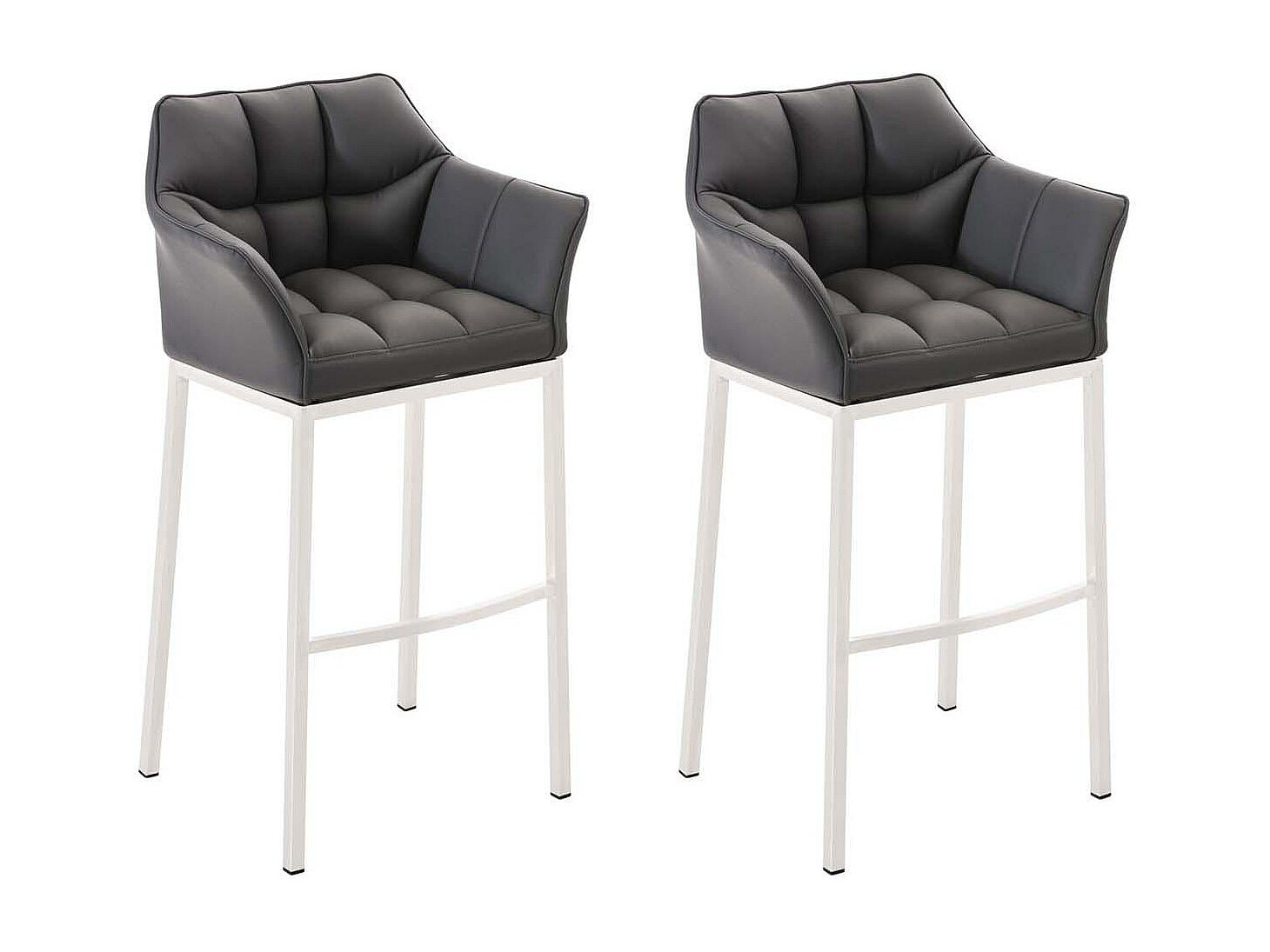 Lot de 2 Tabouret de bar - Similicuir & Blanc - Gris - DAMASO