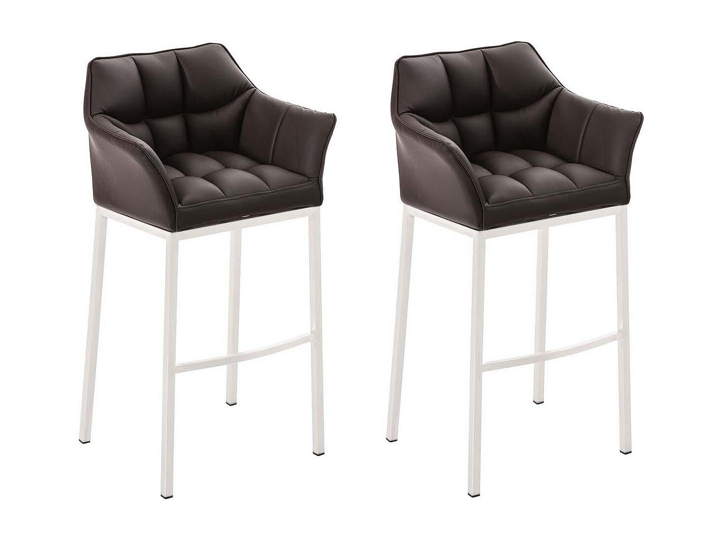 Lot de 2 Tabouret de bar - Similicuir & Blanc - Marron - DAMASO