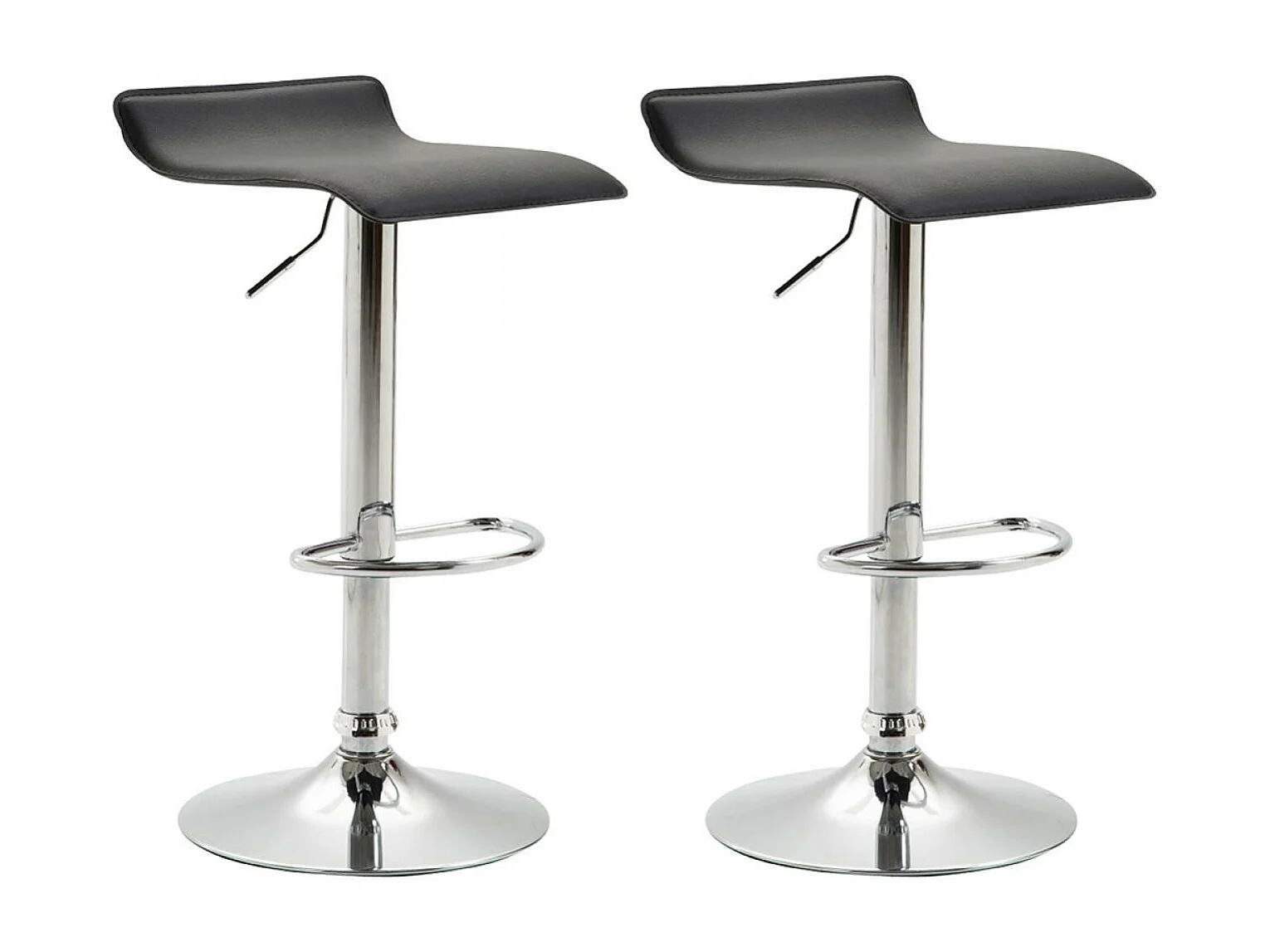 Lot de 2 Tabouret de bar - Similicuir & Métal chromé - Noir - Dyn