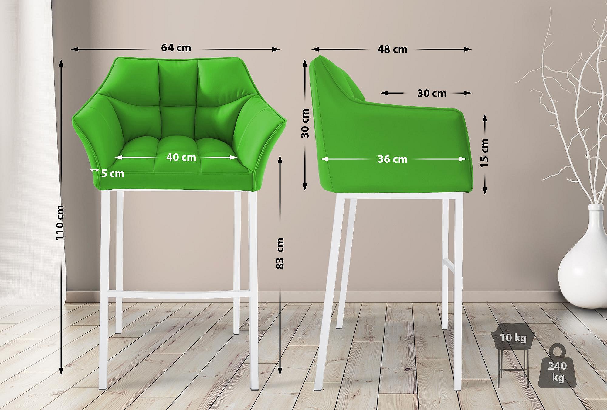 Lot de 2 Tabouret de bar - Similicuir & Blanc - Vert - DAMASO