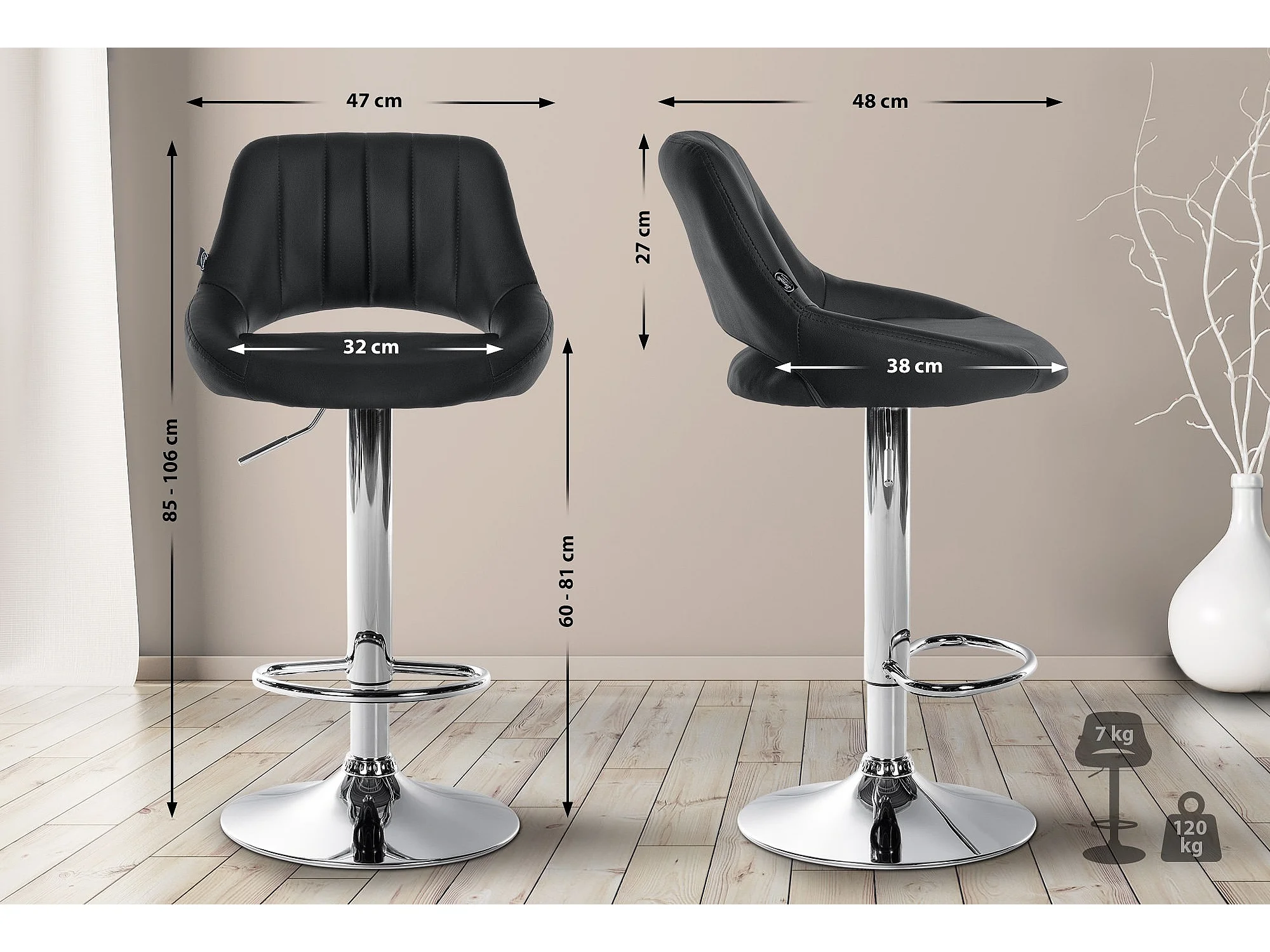 Lot de 2 Tabouret de bar - Similicuir - Noir - Milet