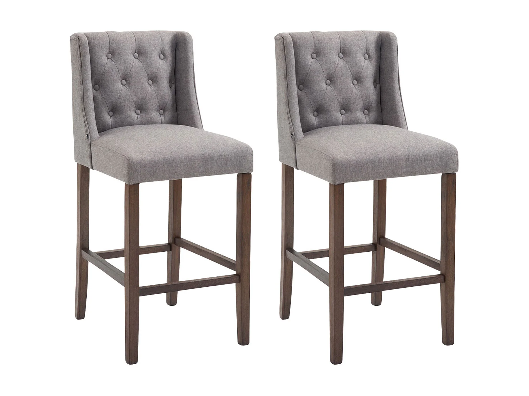 Lot de 2 Tabouret de bar - Tissu & Bois - Gris clair - Cassandra