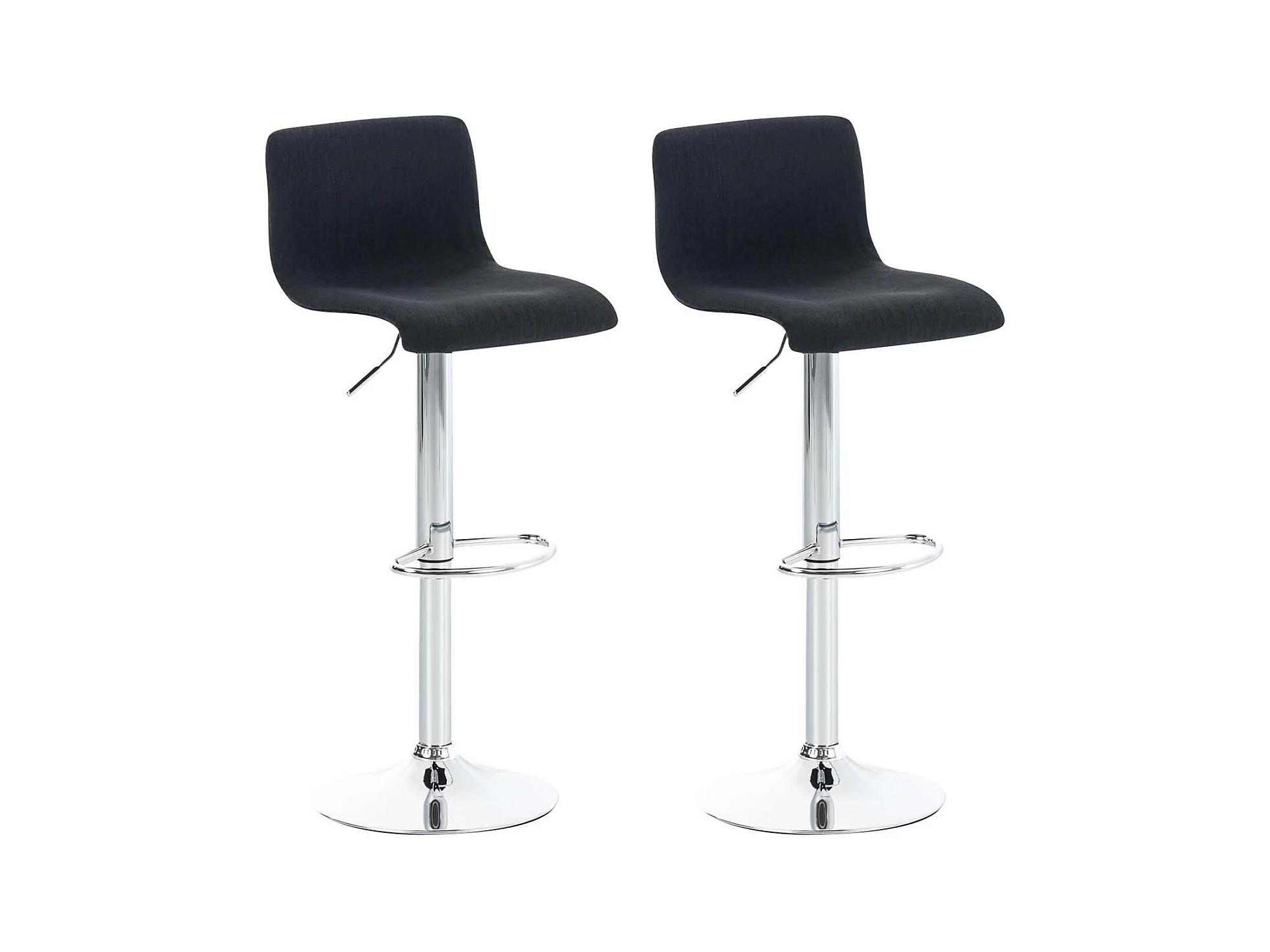 Lot de 2 Tabouret de bar - Tissu & Métal chromé - Noir - Lazio