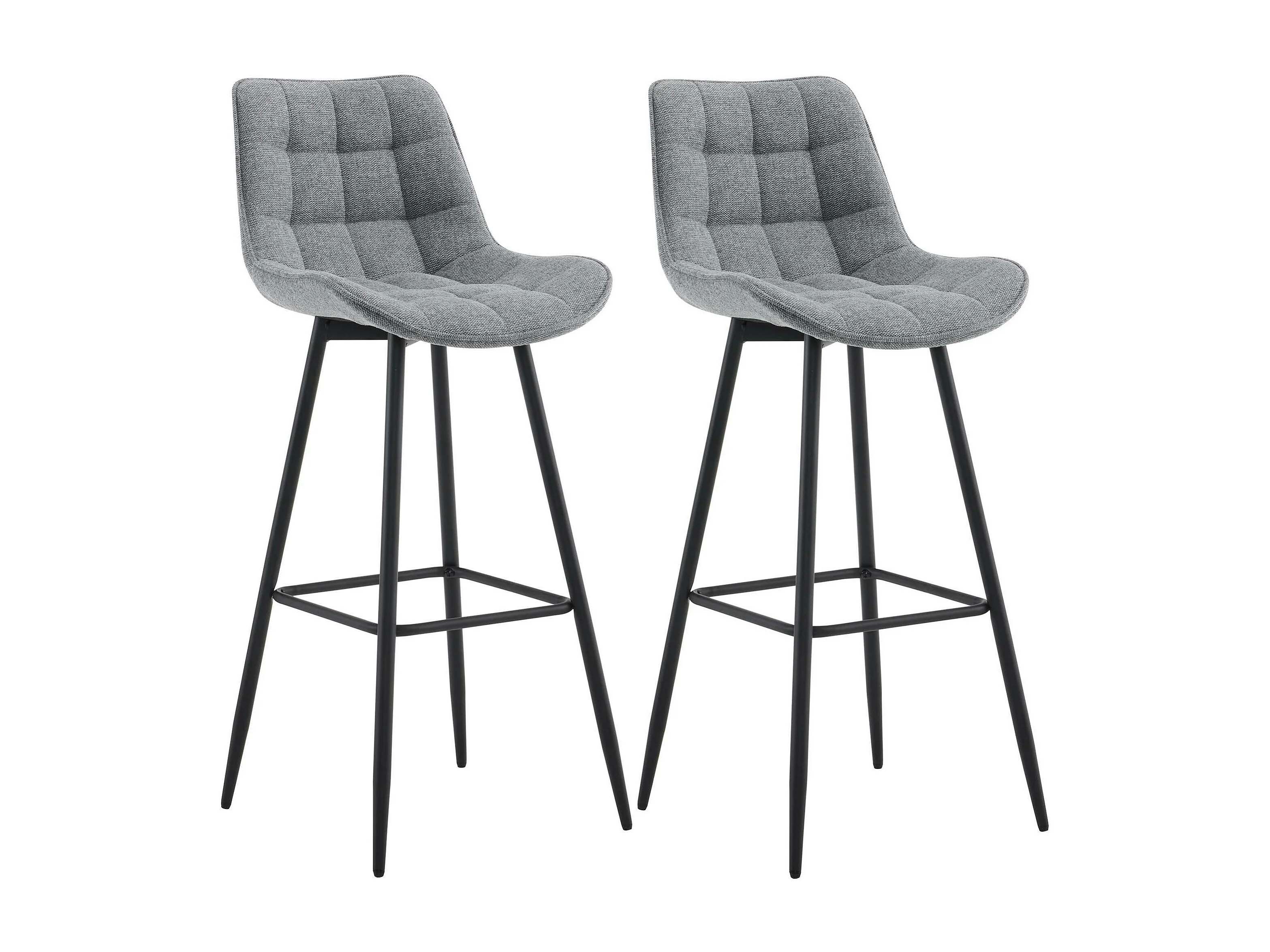 Lot de 2 Tabouret de bar - Tissu & Métal noir mat - Gris - Dartford