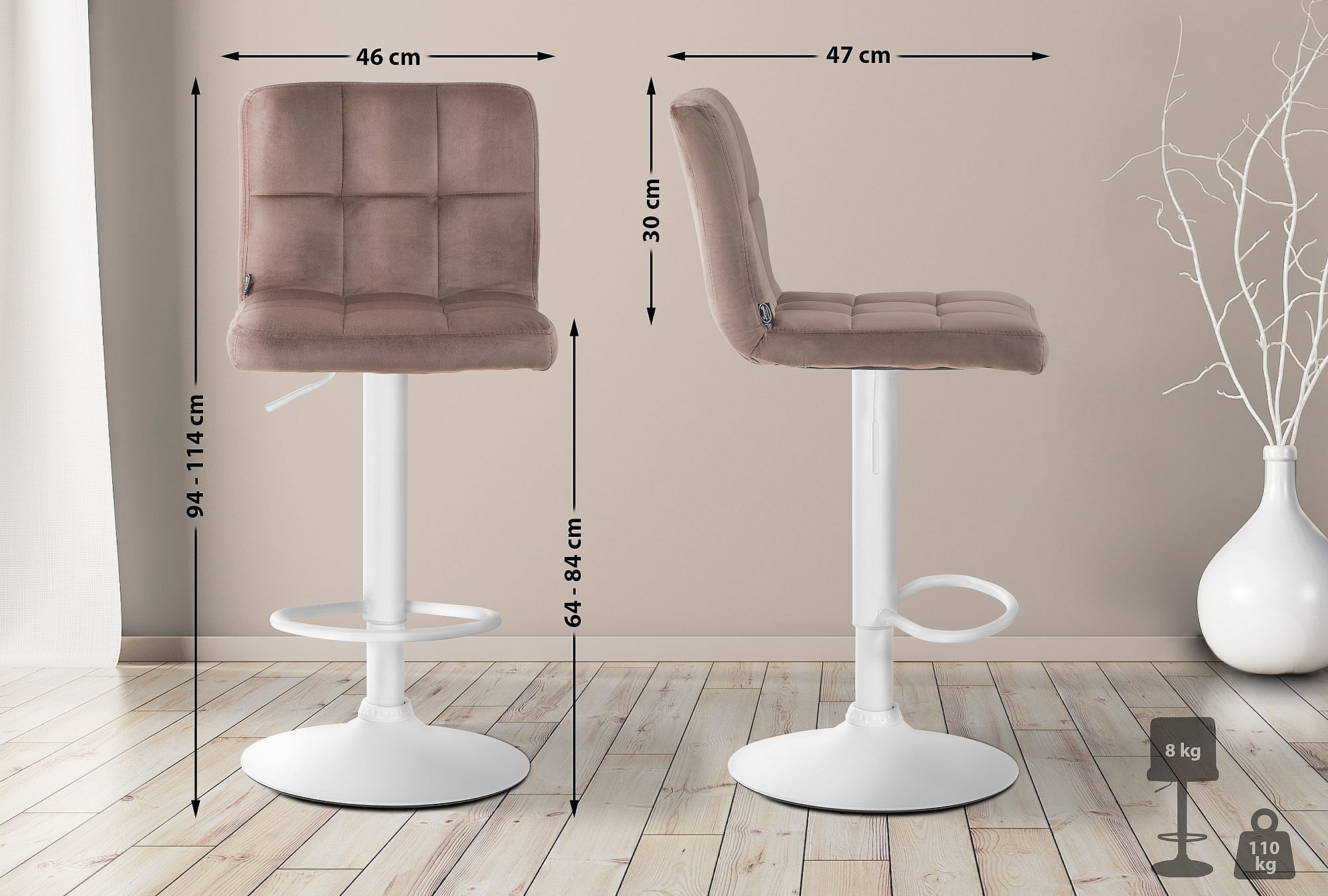 Lot de 2 Tabouret de bar - Velours & Blanc - Marron - Peru