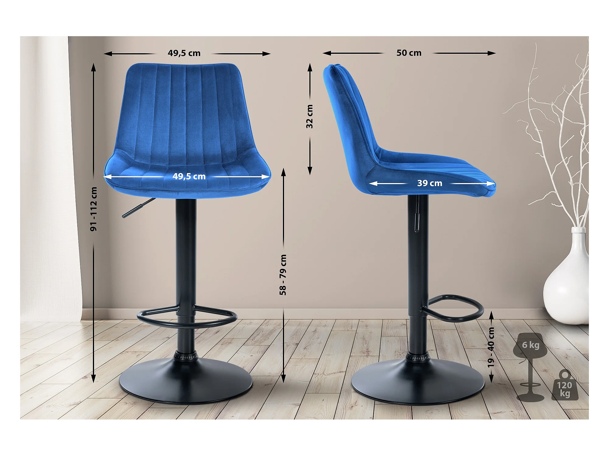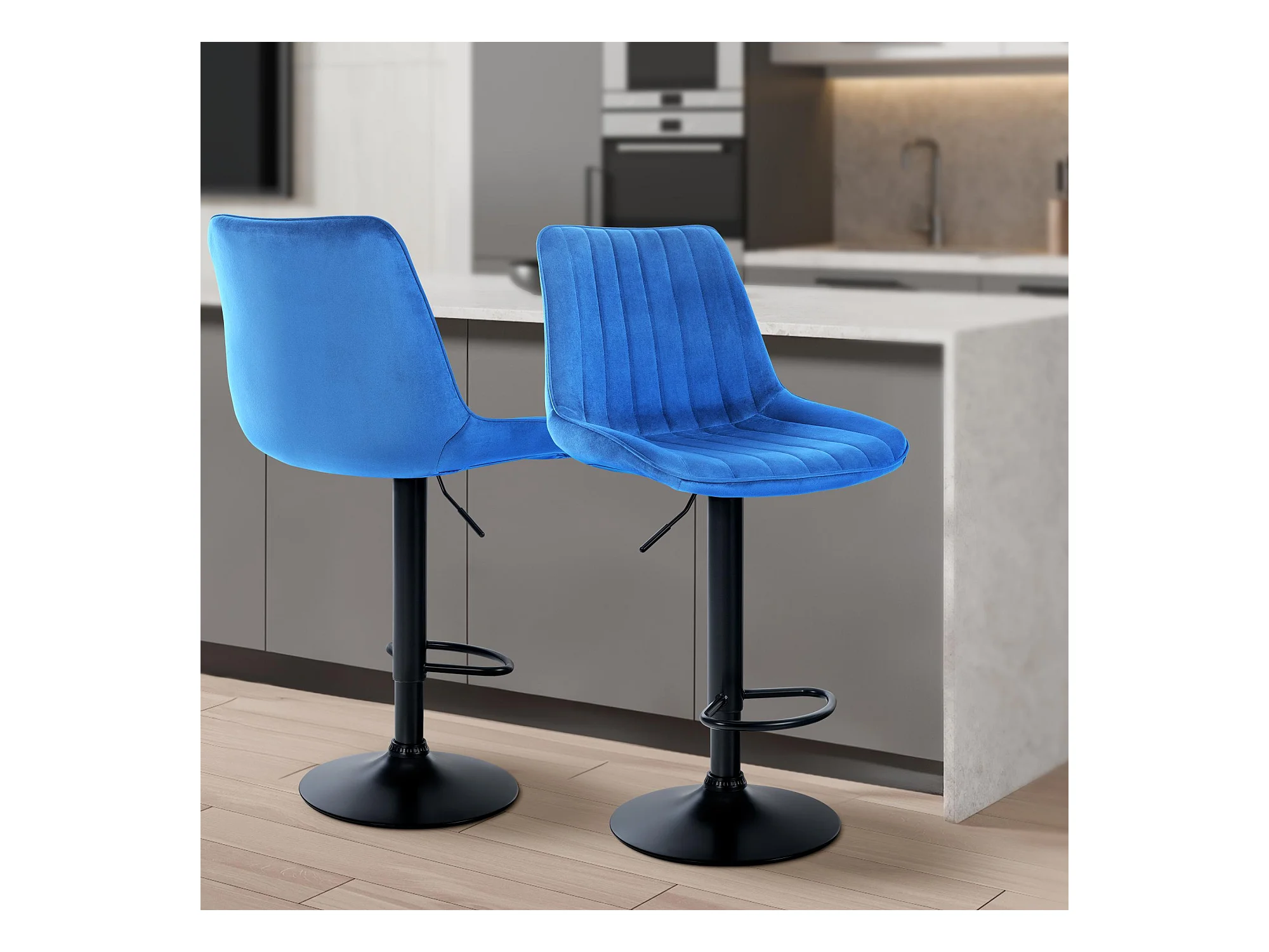 Lot de 2 Tabouret de bar - Velours - Bleu - Milet