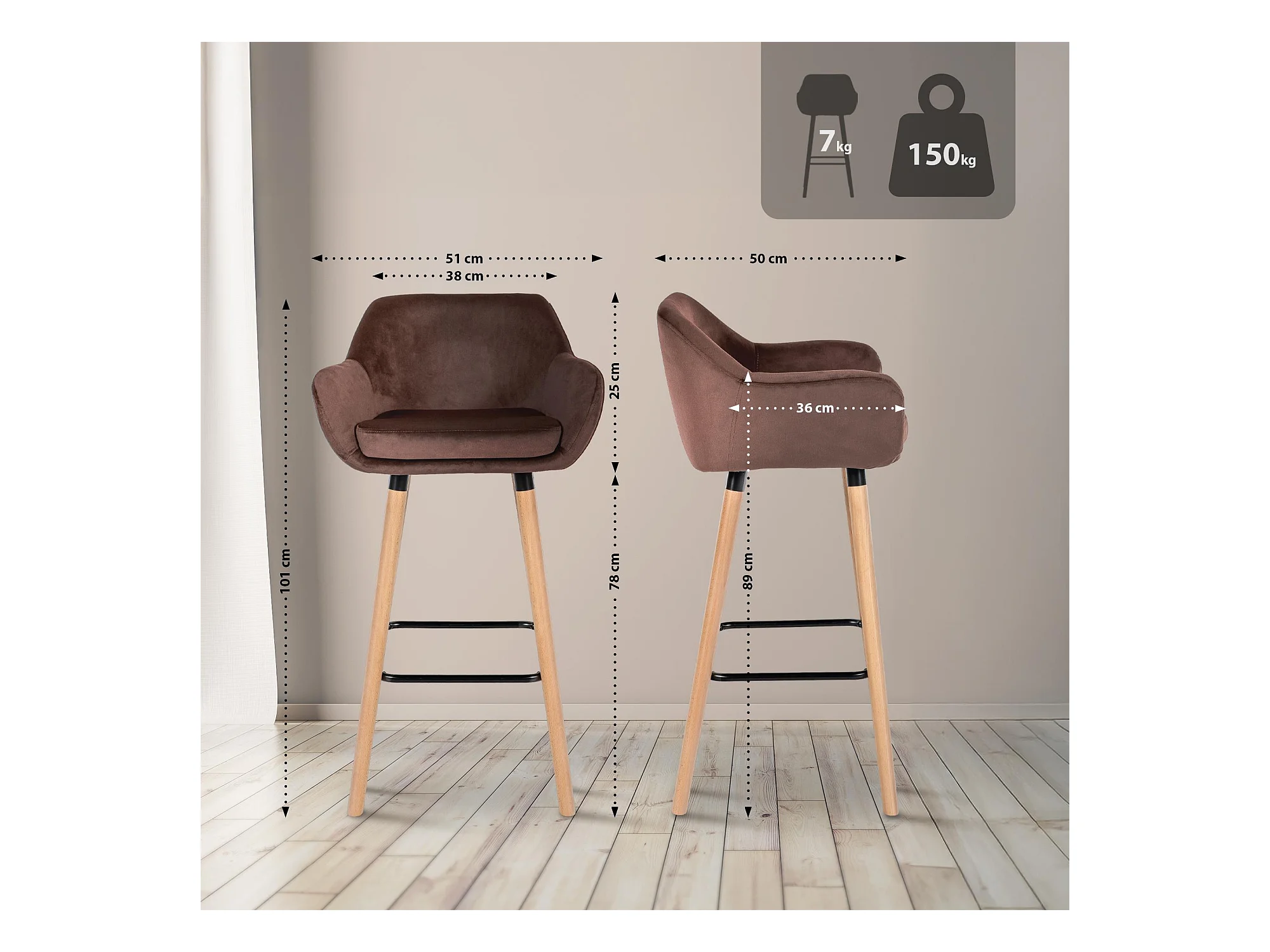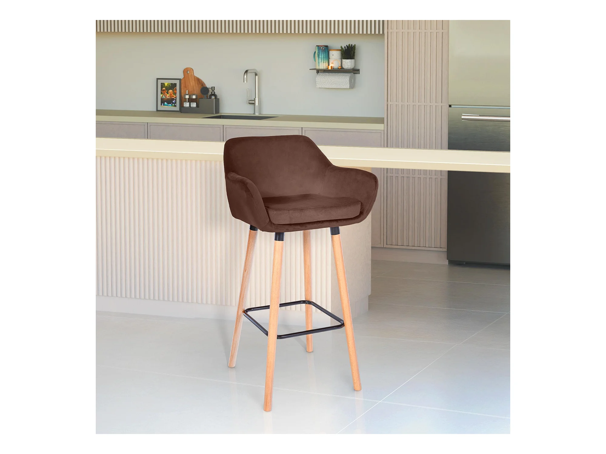 Lot de 2 Tabouret de bar - Velours - Café - Grant