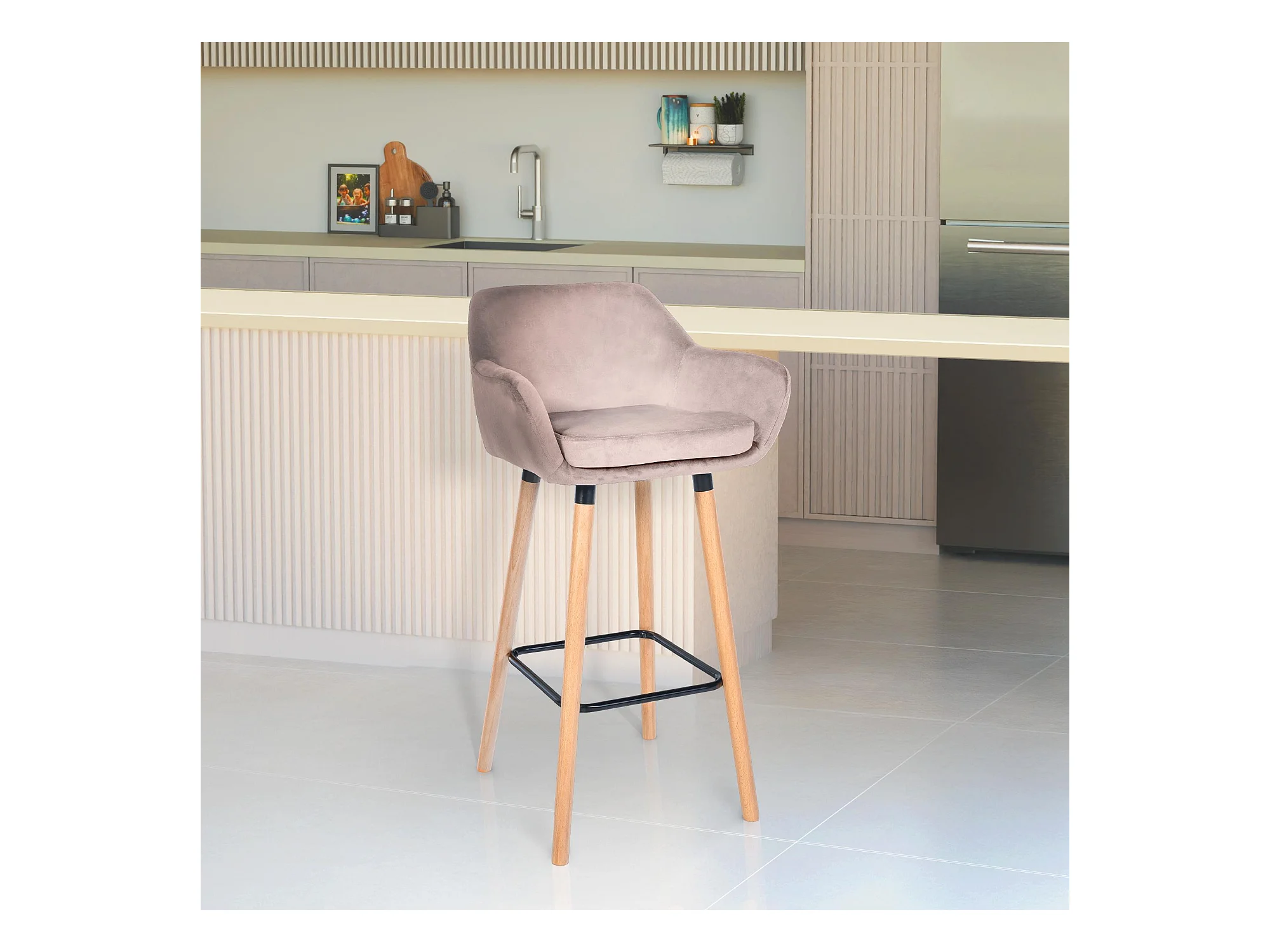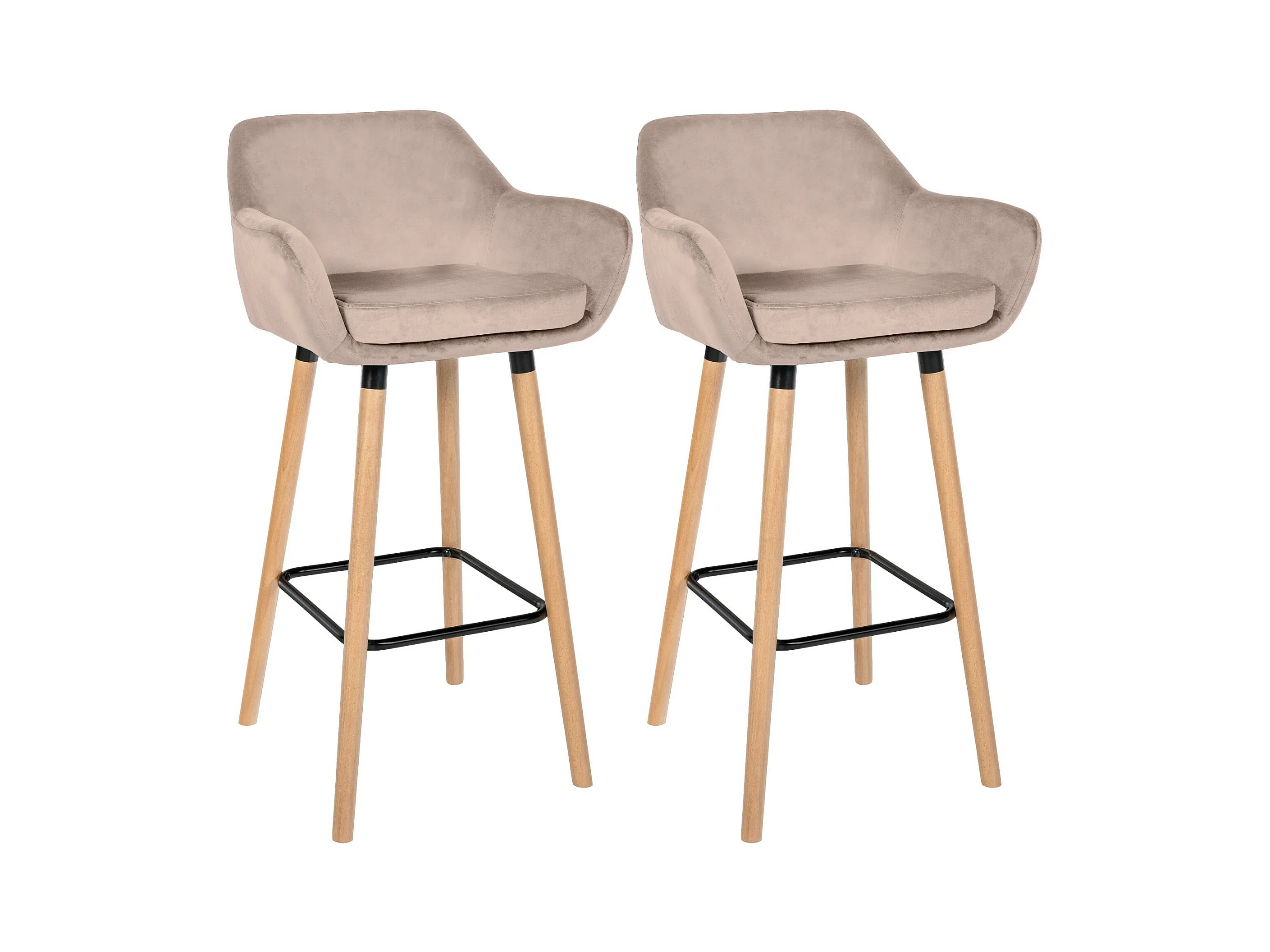 Lot de 2 Tabouret de bar - Velours - Gris clair - Grant