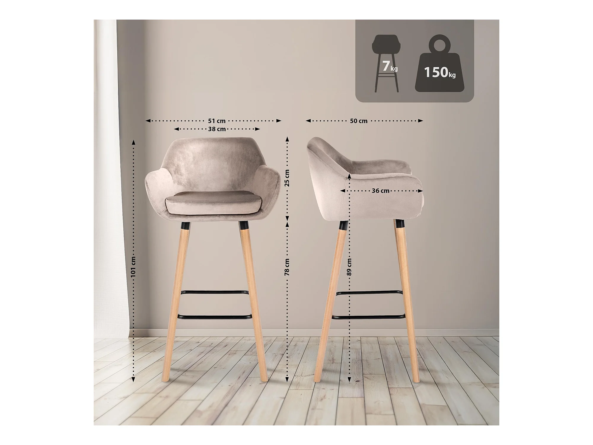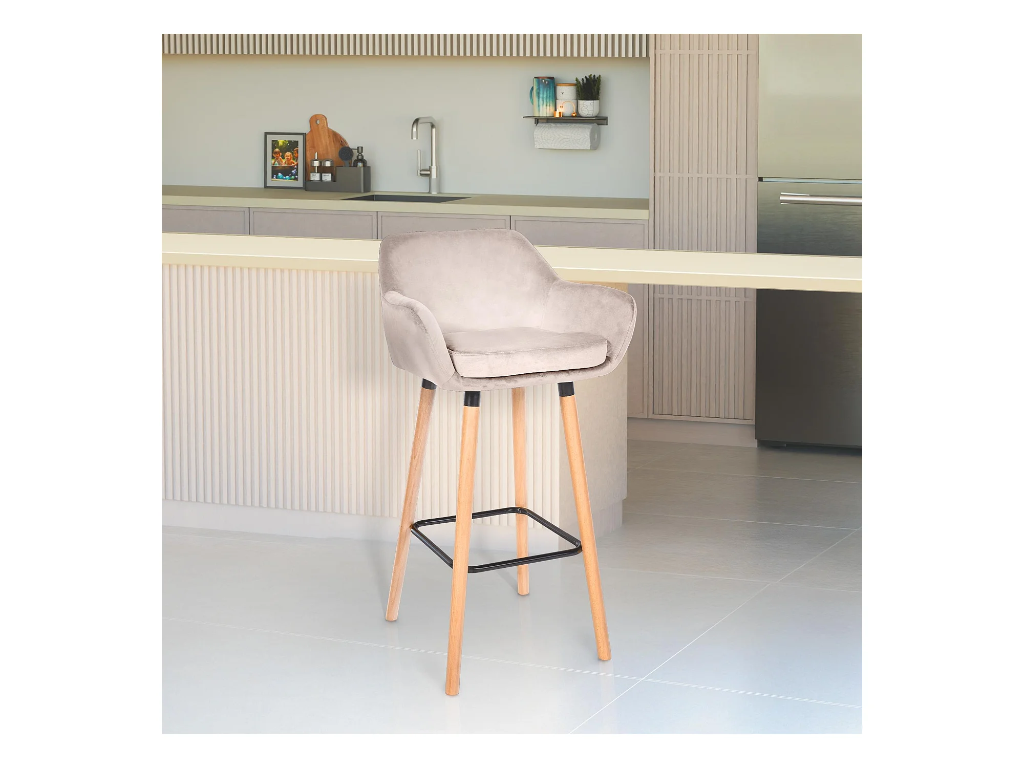 Lot de 2 Tabouret de bar - Velours - Crème - Grant