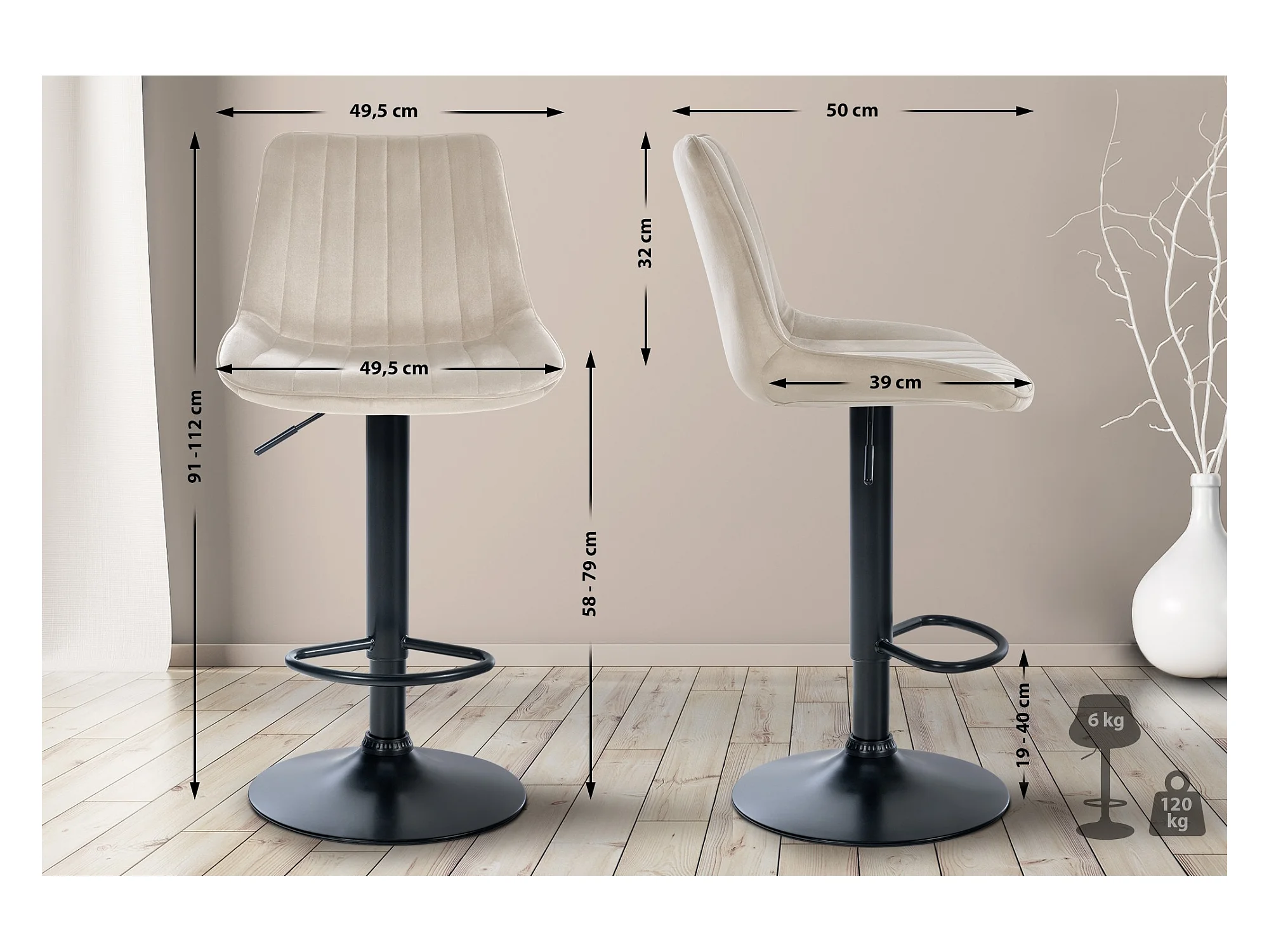 Lot de 2 Tabouret de bar - Velours & Noir - Crème - Damar