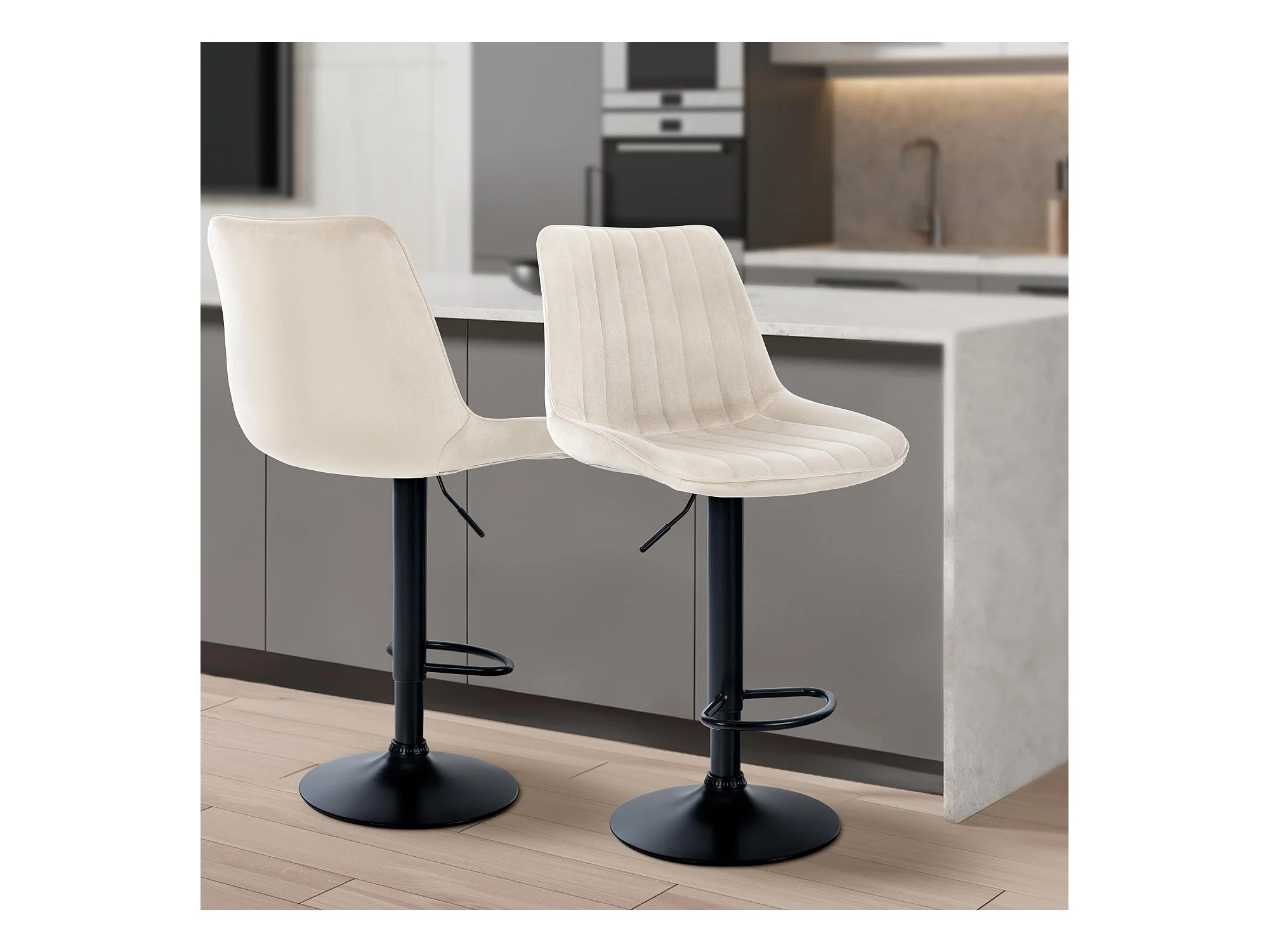 Lot de 2 Tabouret de bar - Velours - Crème - Toni