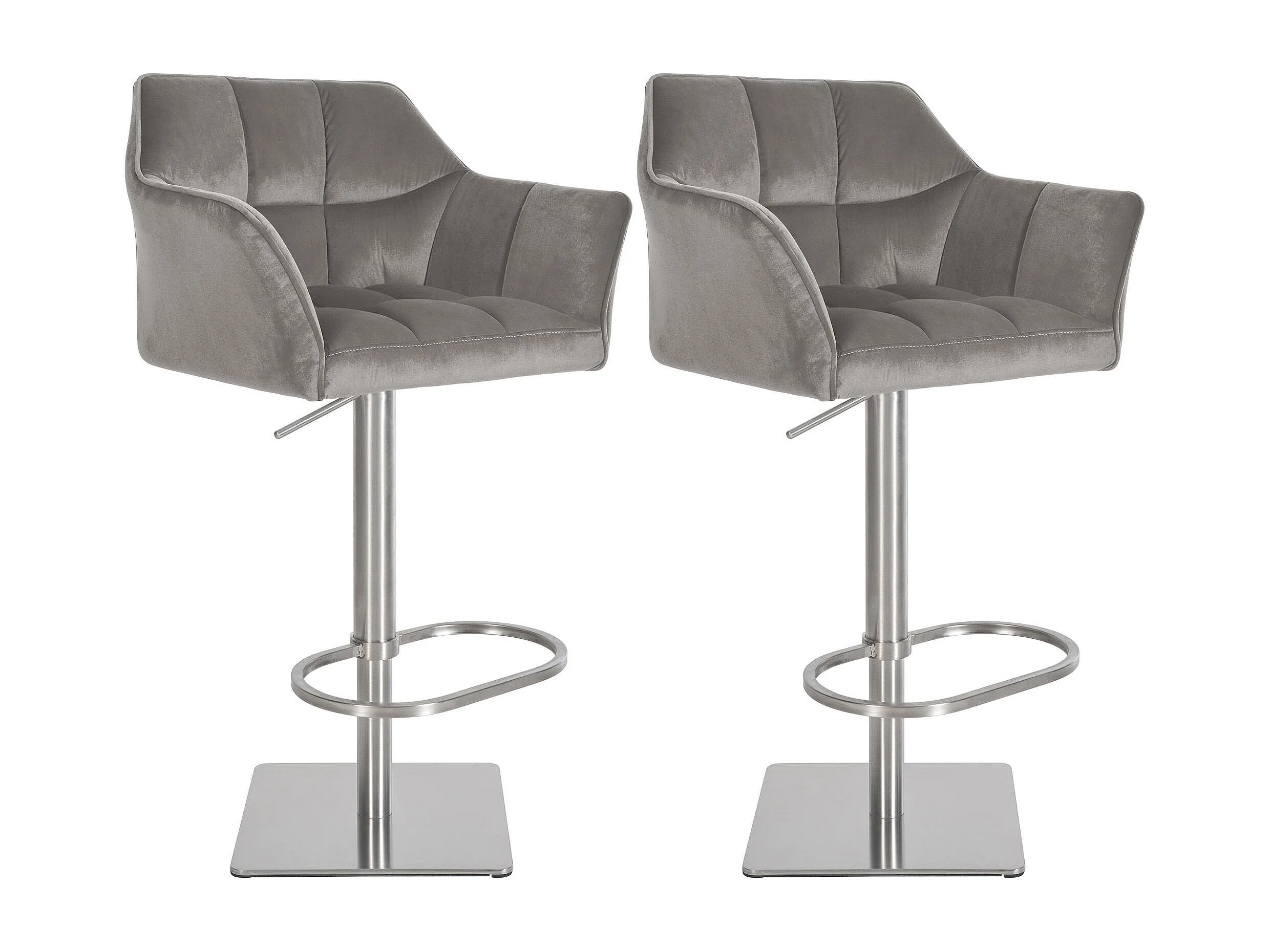 Lot de 2 Tabouret de bar - Velours - Gris - Damaso