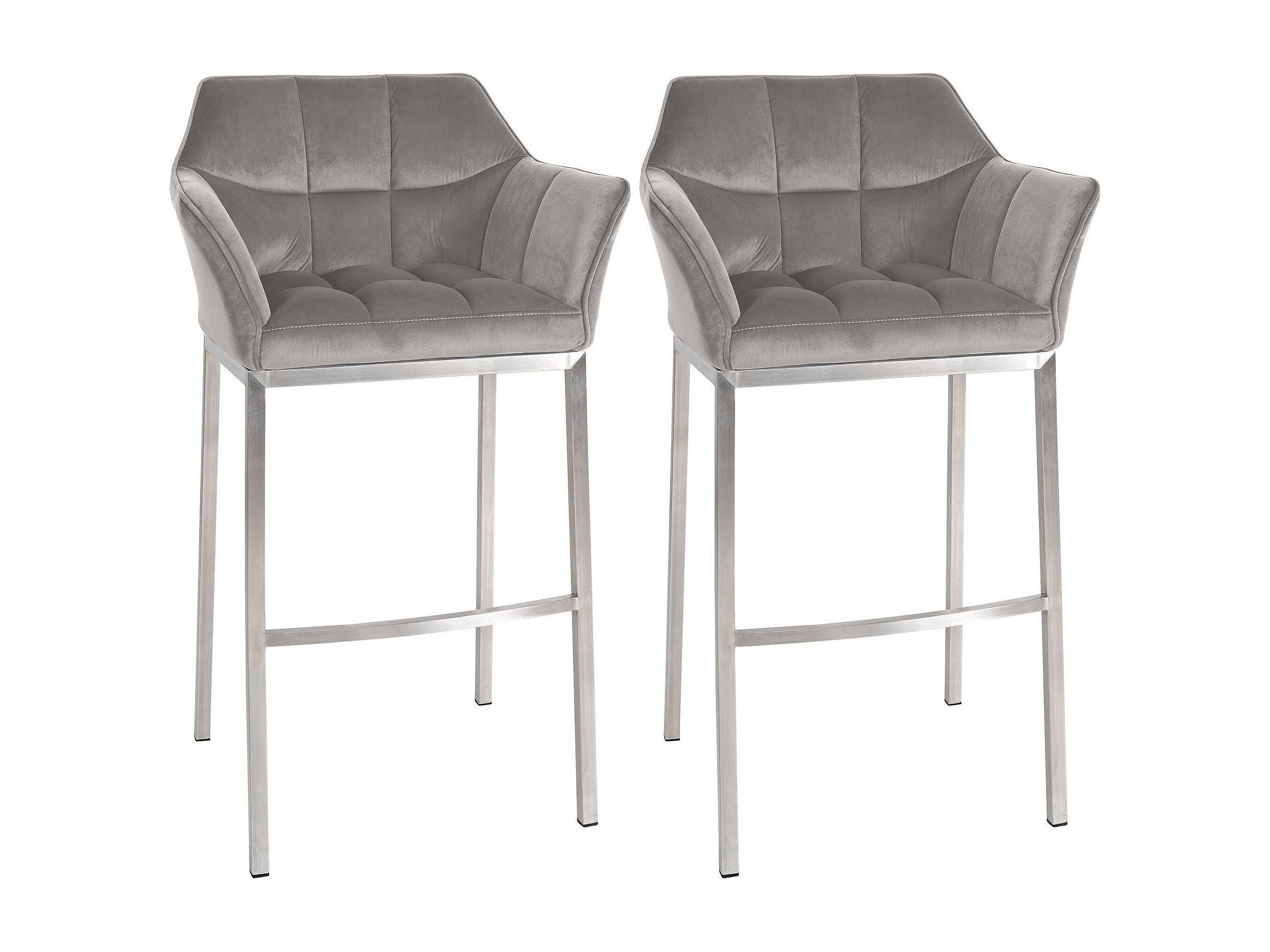 Lot de 2 Tabouret de bar - Velours - Gris - Damaso