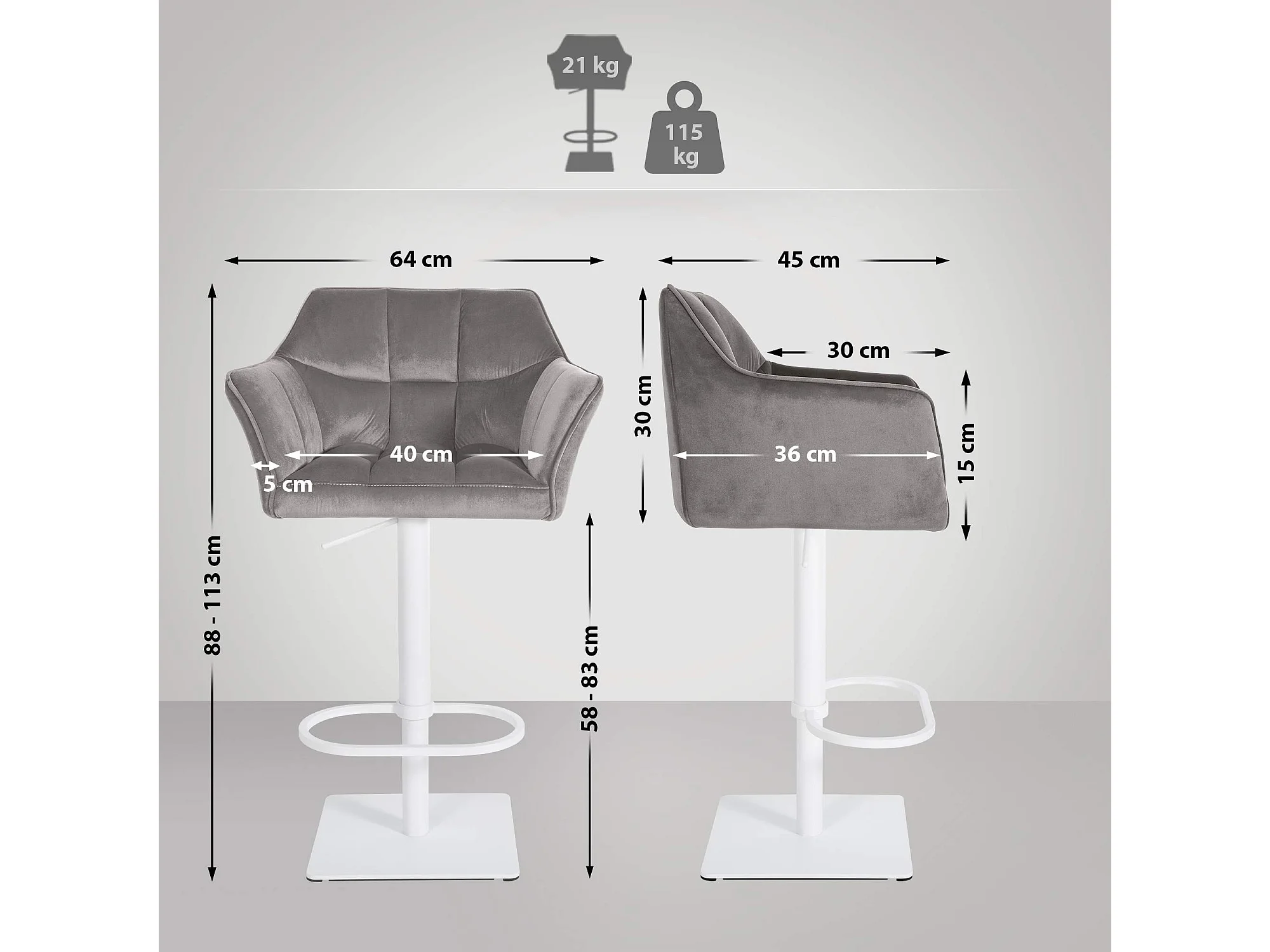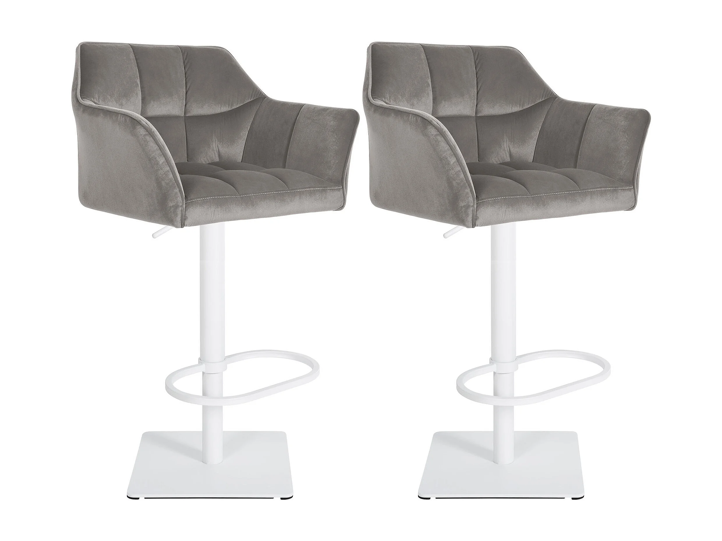 Lot de 2 Tabouret de bar - Velours - Gris - Damaso