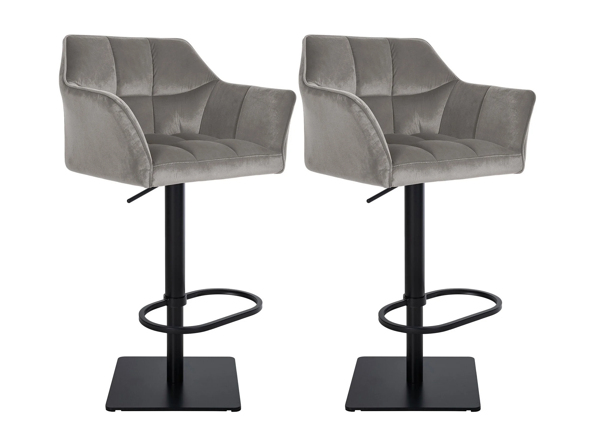 Lot de 2 Tabouret de bar - Velours - Gris - Damaso