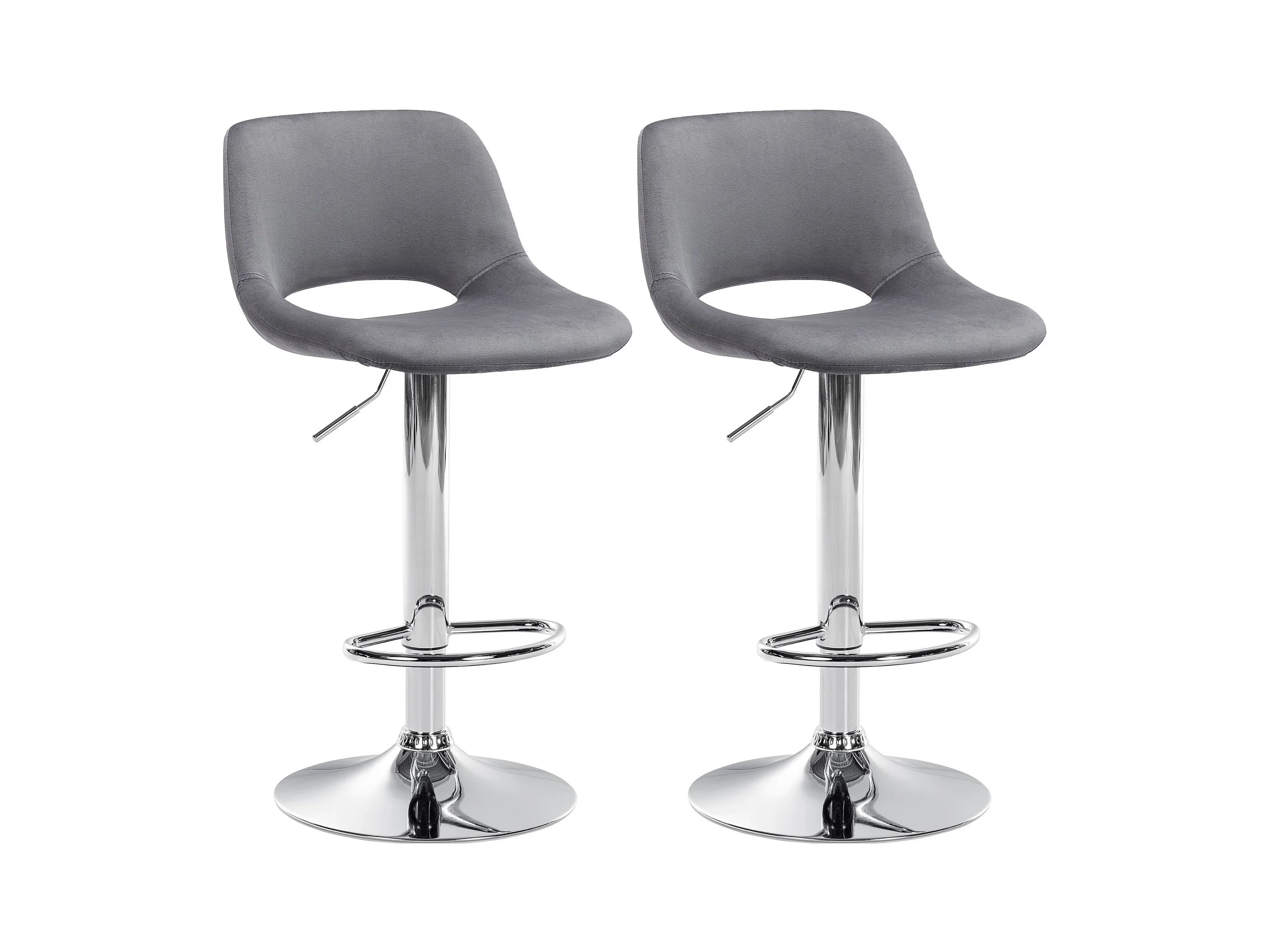 Lot de 2 Tabouret de bar - Velours & Chrome - Gris foncé - Damar