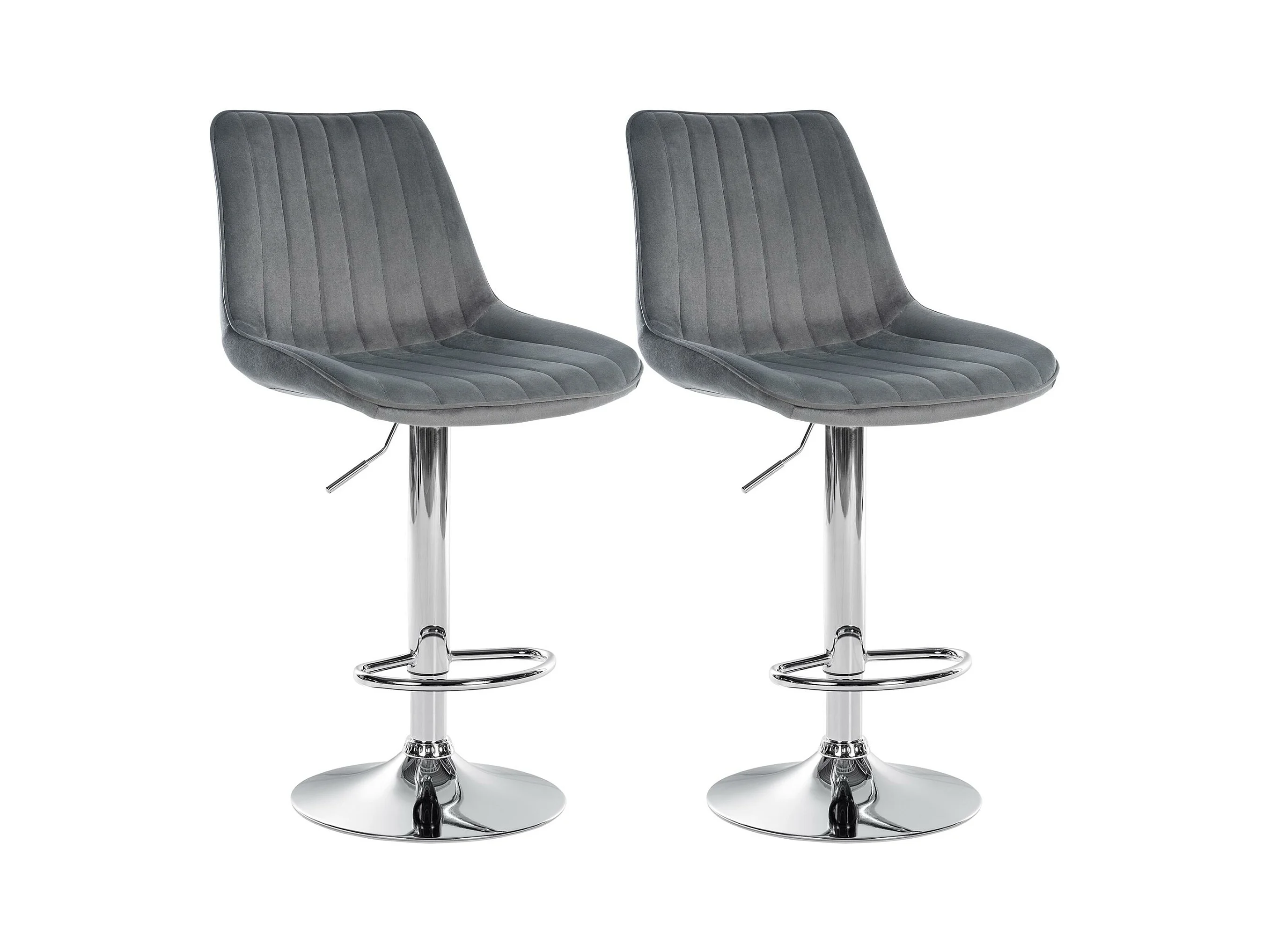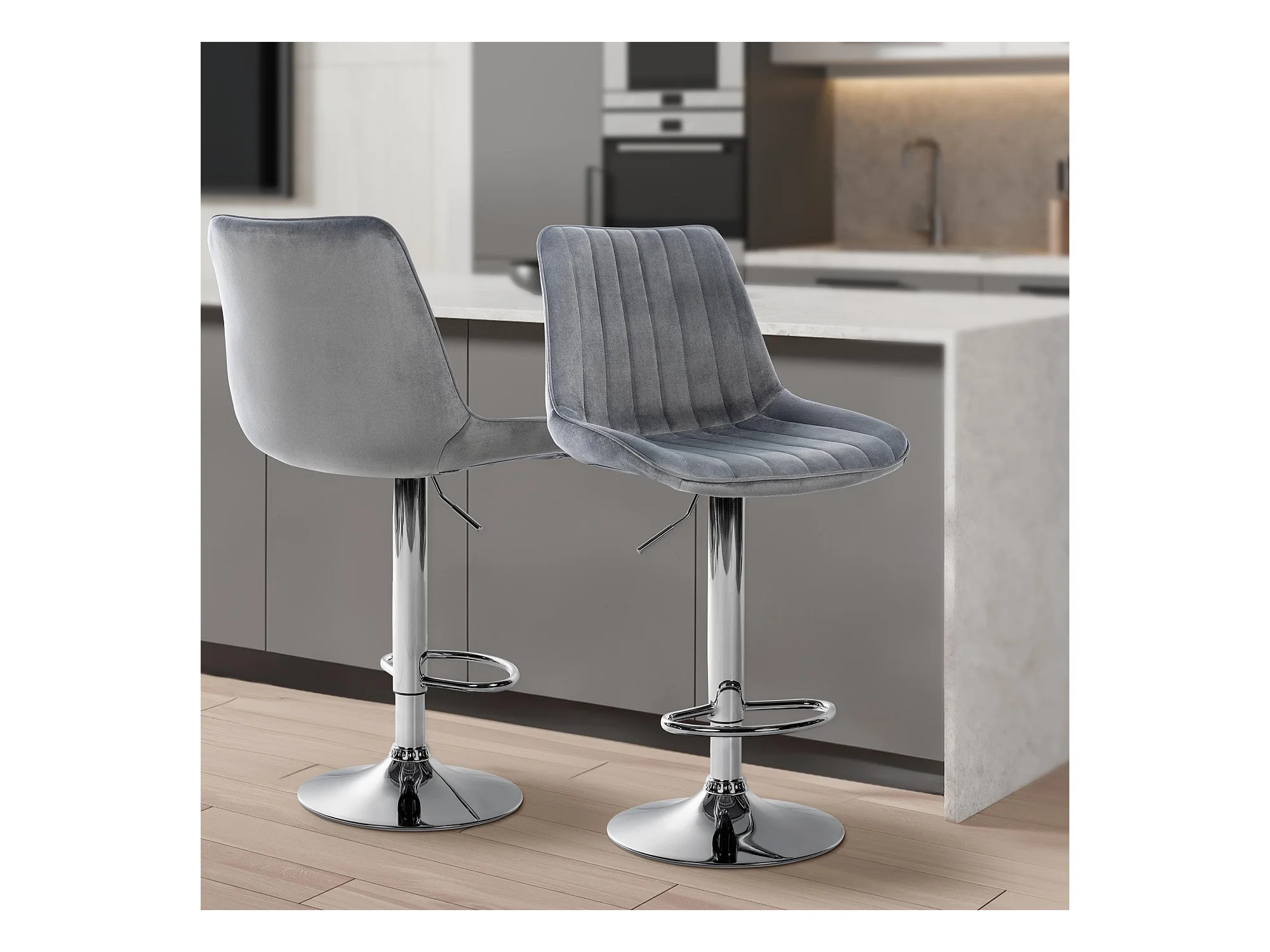 Lot de 2 Tabouret de bar - Velours - Gris - Solon