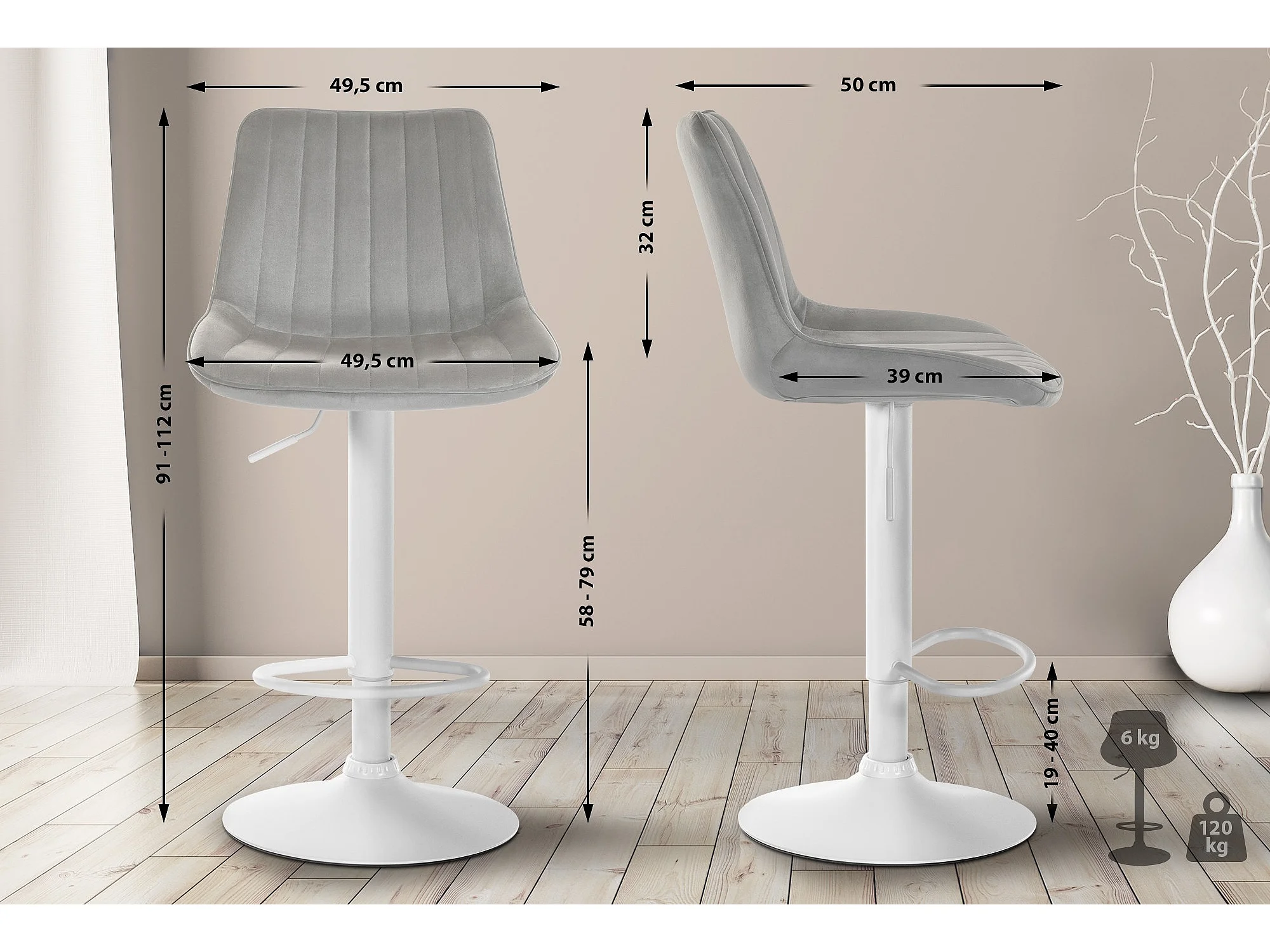 Lot de 2 Tabouret de bar - Velours - Gris - Solon