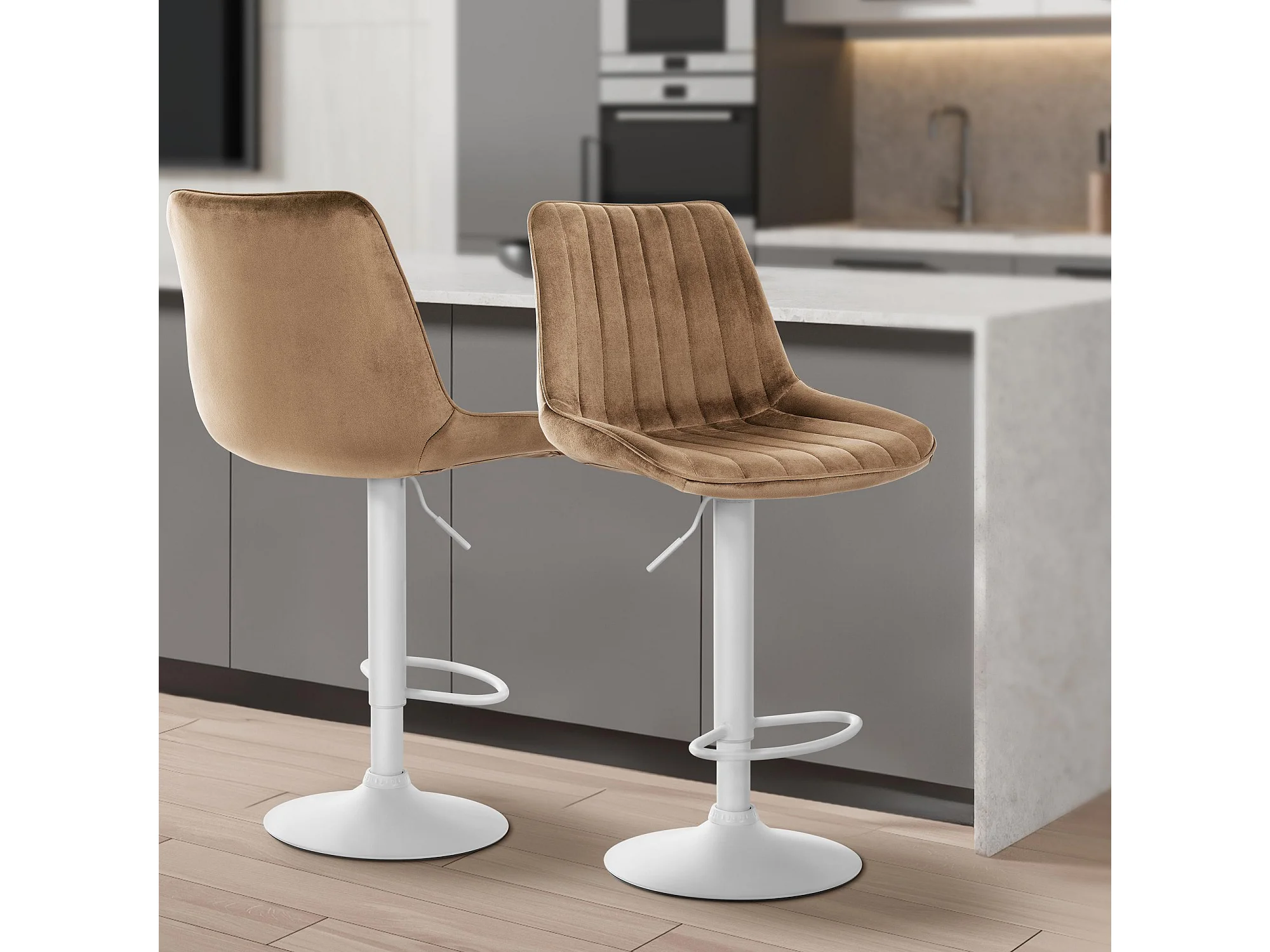Lot de 2 Tabouret de bar - Velours & Métal blanc mat - Marron - Divo