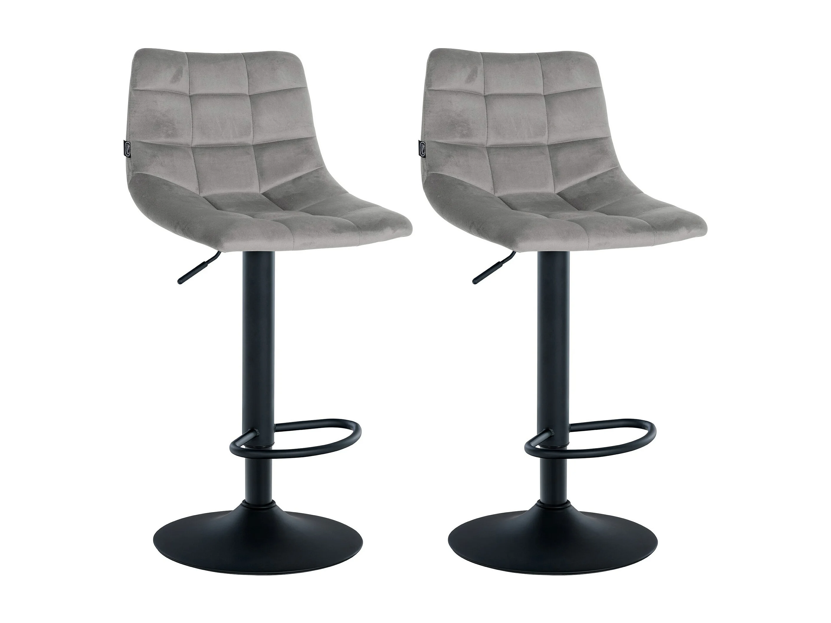 Lot de 2 Tabouret de bar - Velours - Gris - Toni