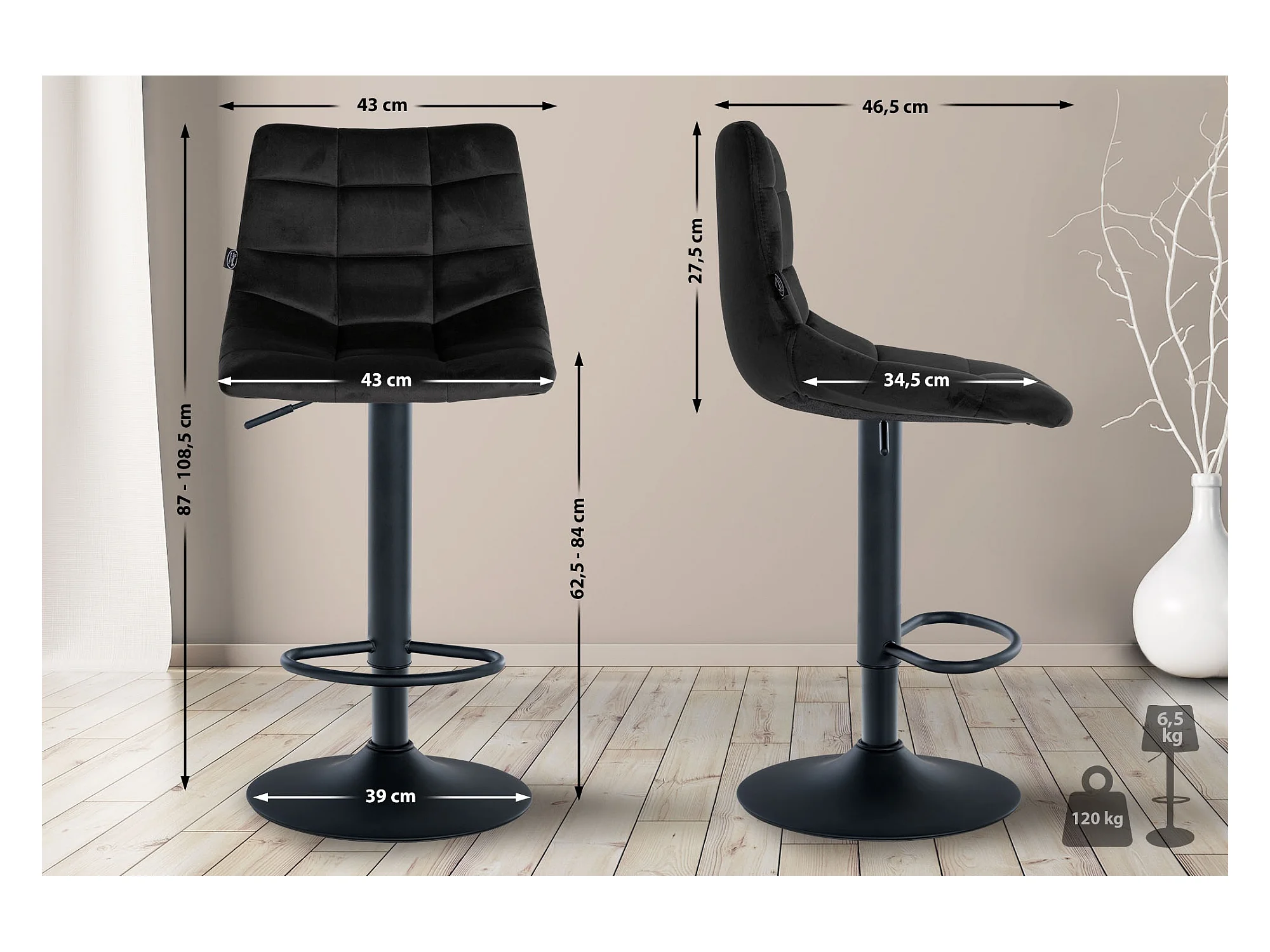 Tabourets de bar lot de 2 noir velours