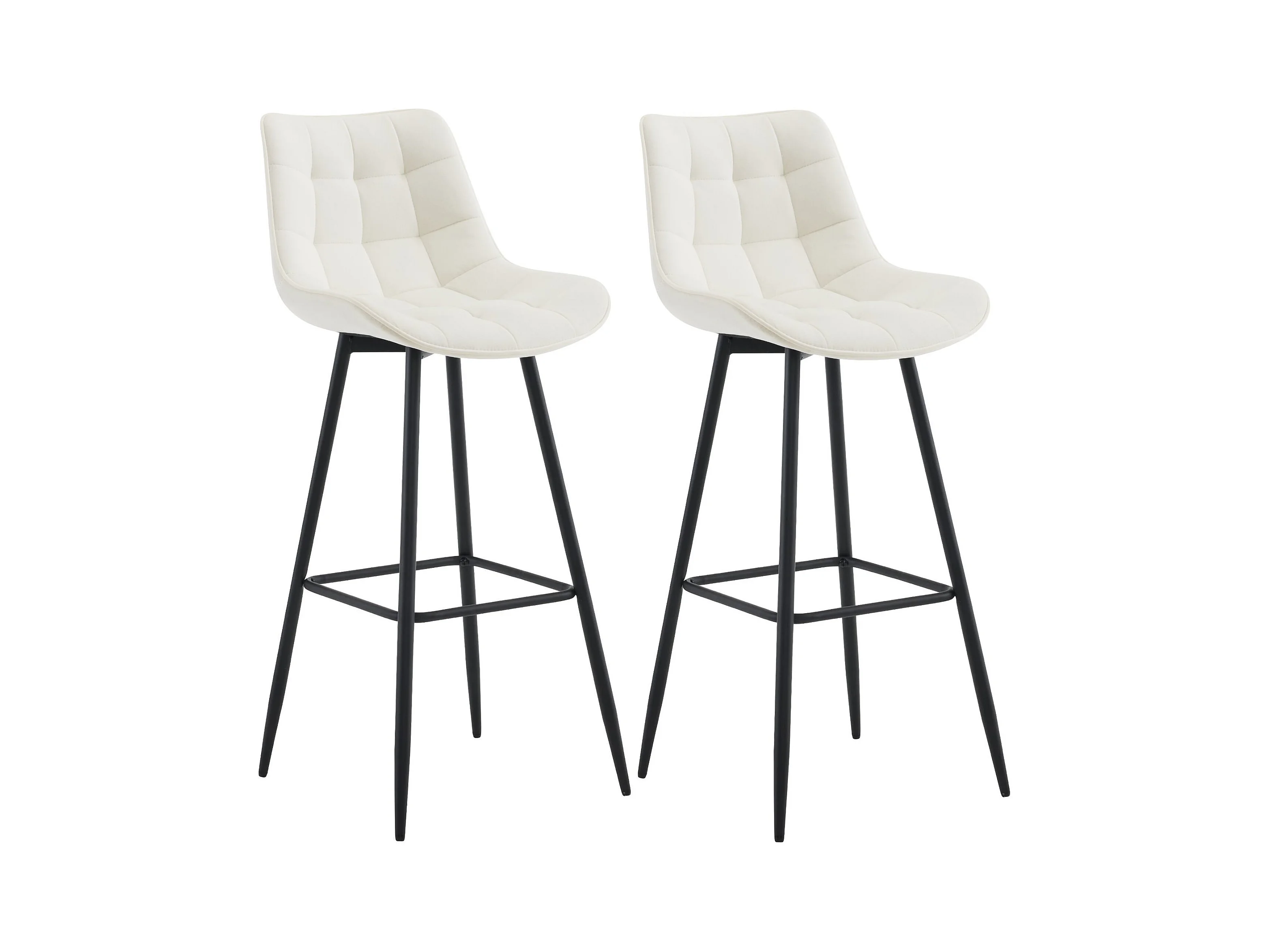 Lot de 2 Tabouret de bar - Velours - Crème - Milet