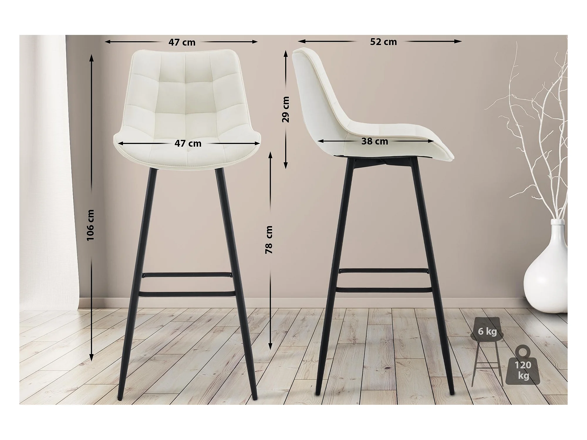 Lot de 2 Tabouret de bar - Velours & Métal noir mat - Crème - Dartford