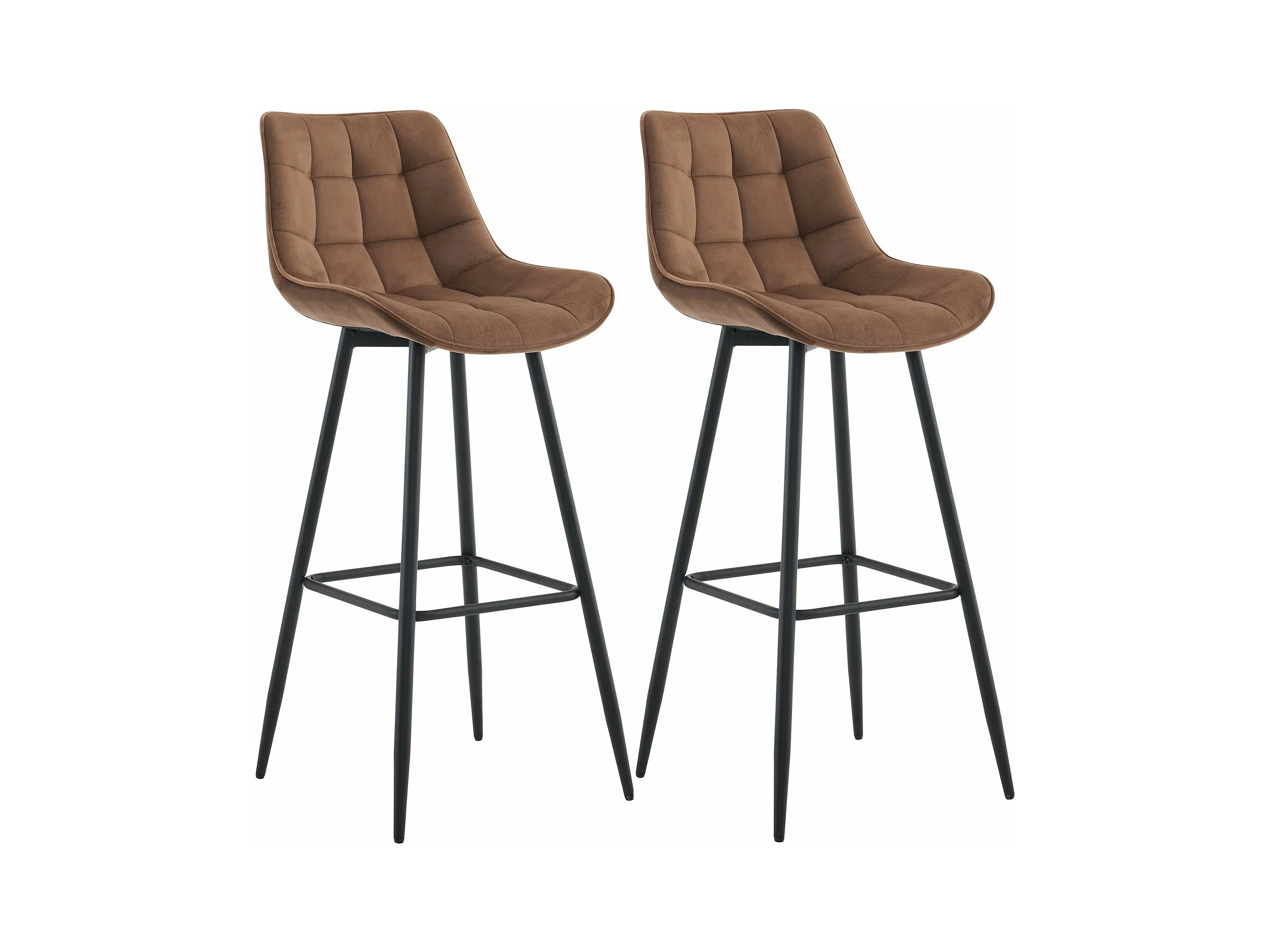 Lot de 2 Tabouret de bar - Velours & Métal noir mat - Marron - Dartford