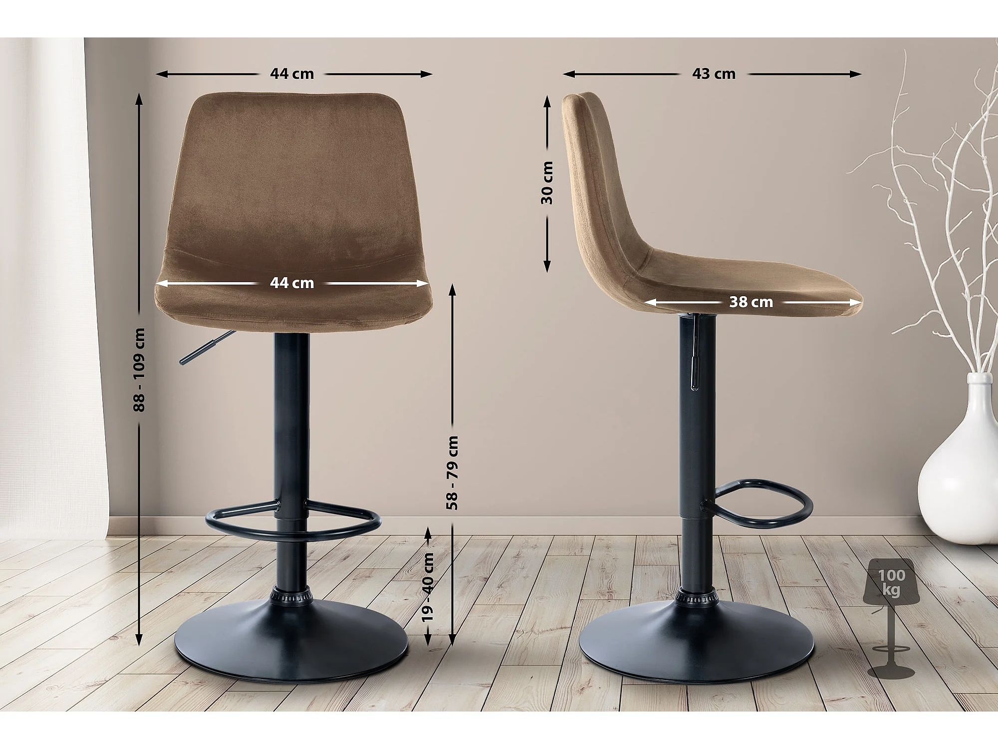 Lot de 2 Tabouret de bar - Velours - Marron - Damaso