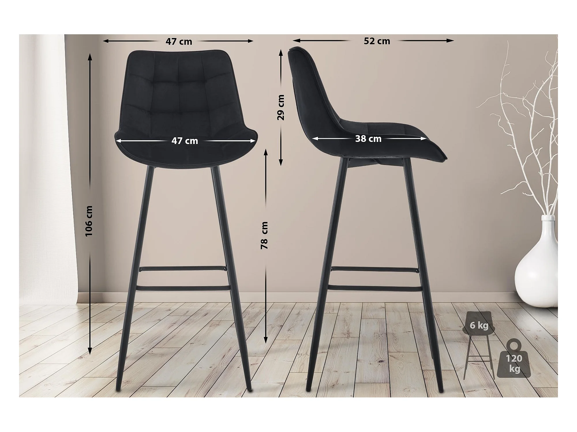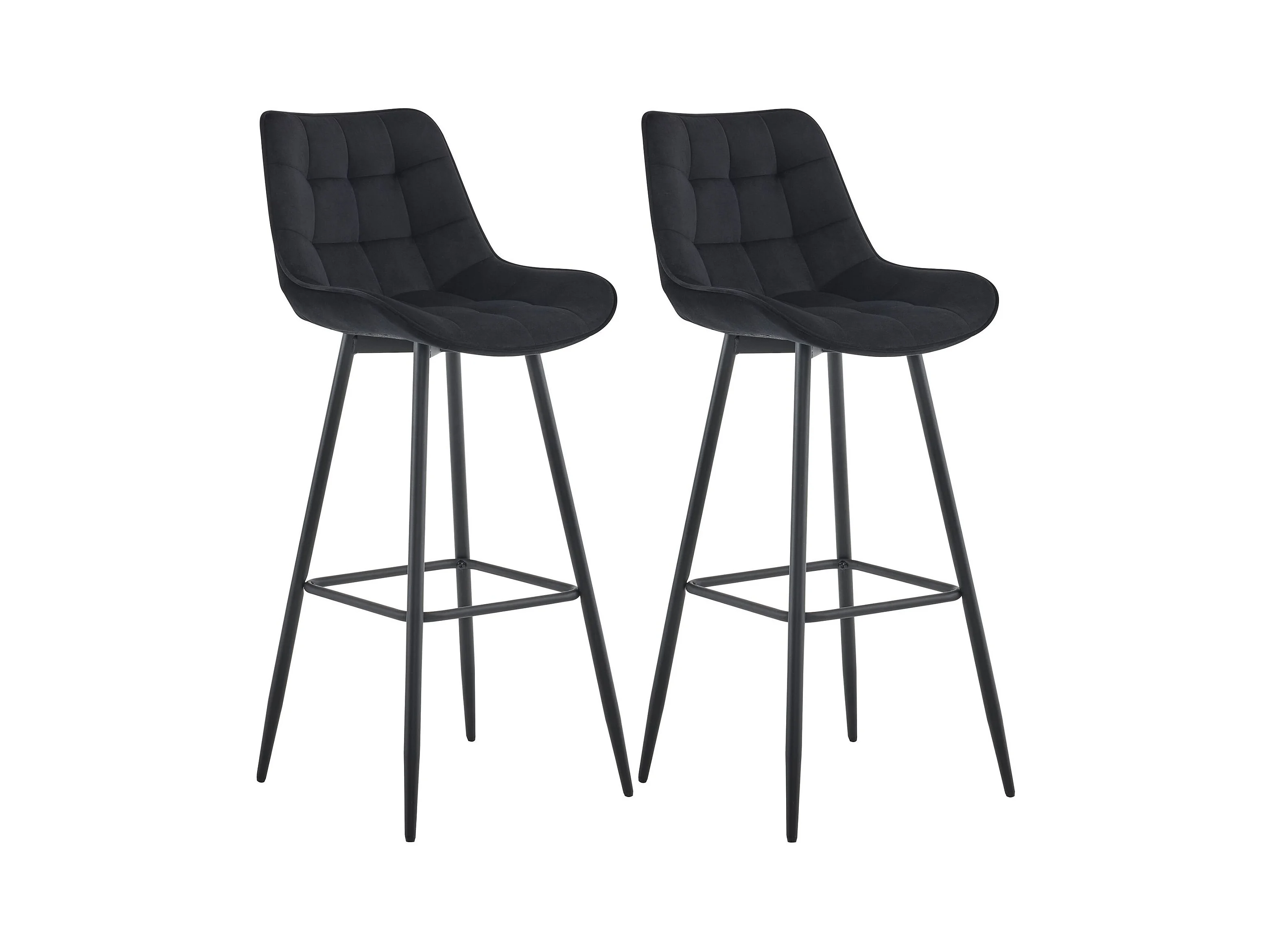 Lot de 2 Tabouret de bar - Velours & Métal noir mat - Noir - Dartford