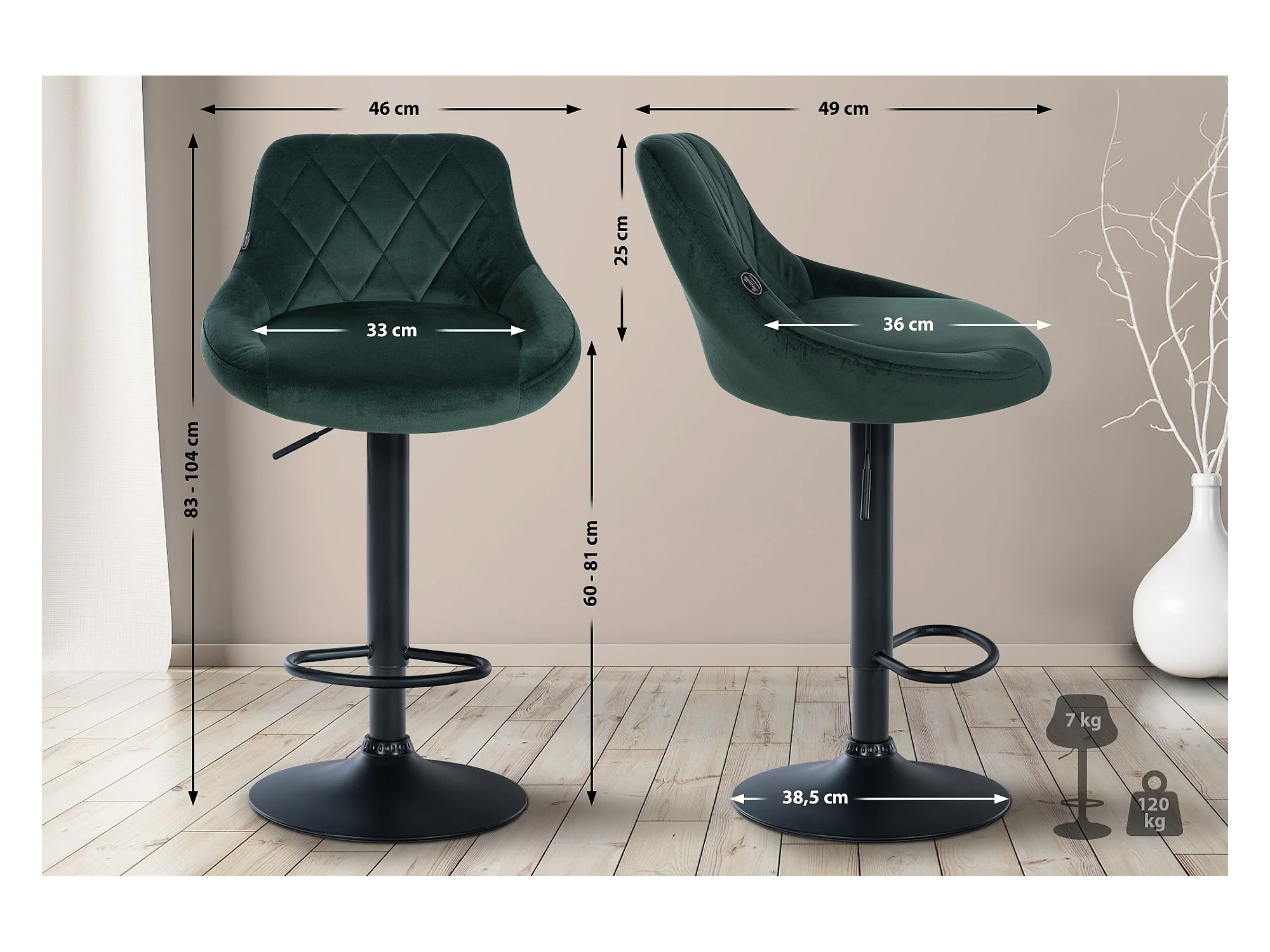 Lot de 2 Tabouret de bar - Velours & Métal - Vert foncé - Lazio