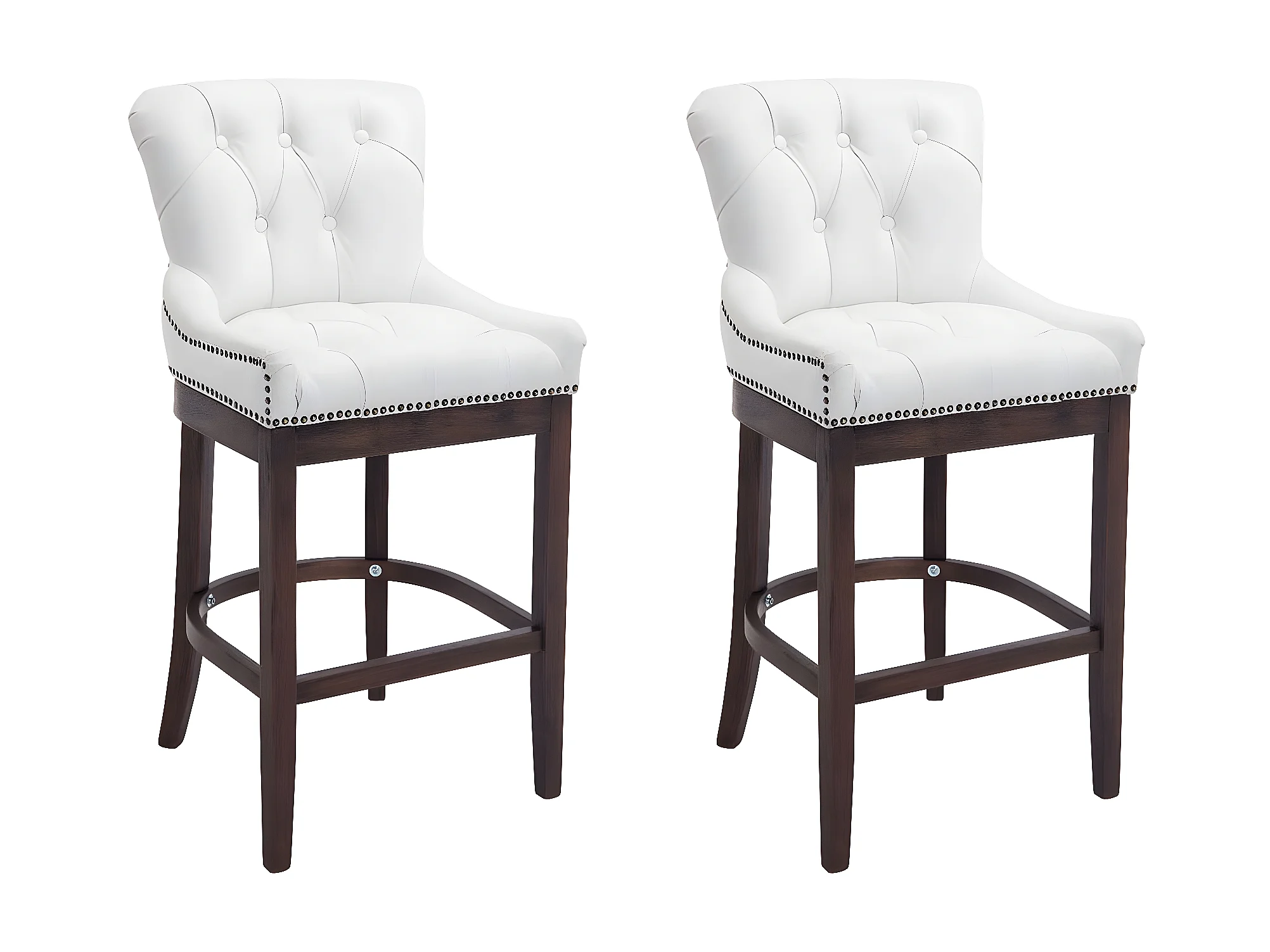 Lot de 2 Tabouret de bar - Véritable cuir & Bois - Blanc - Lakewood