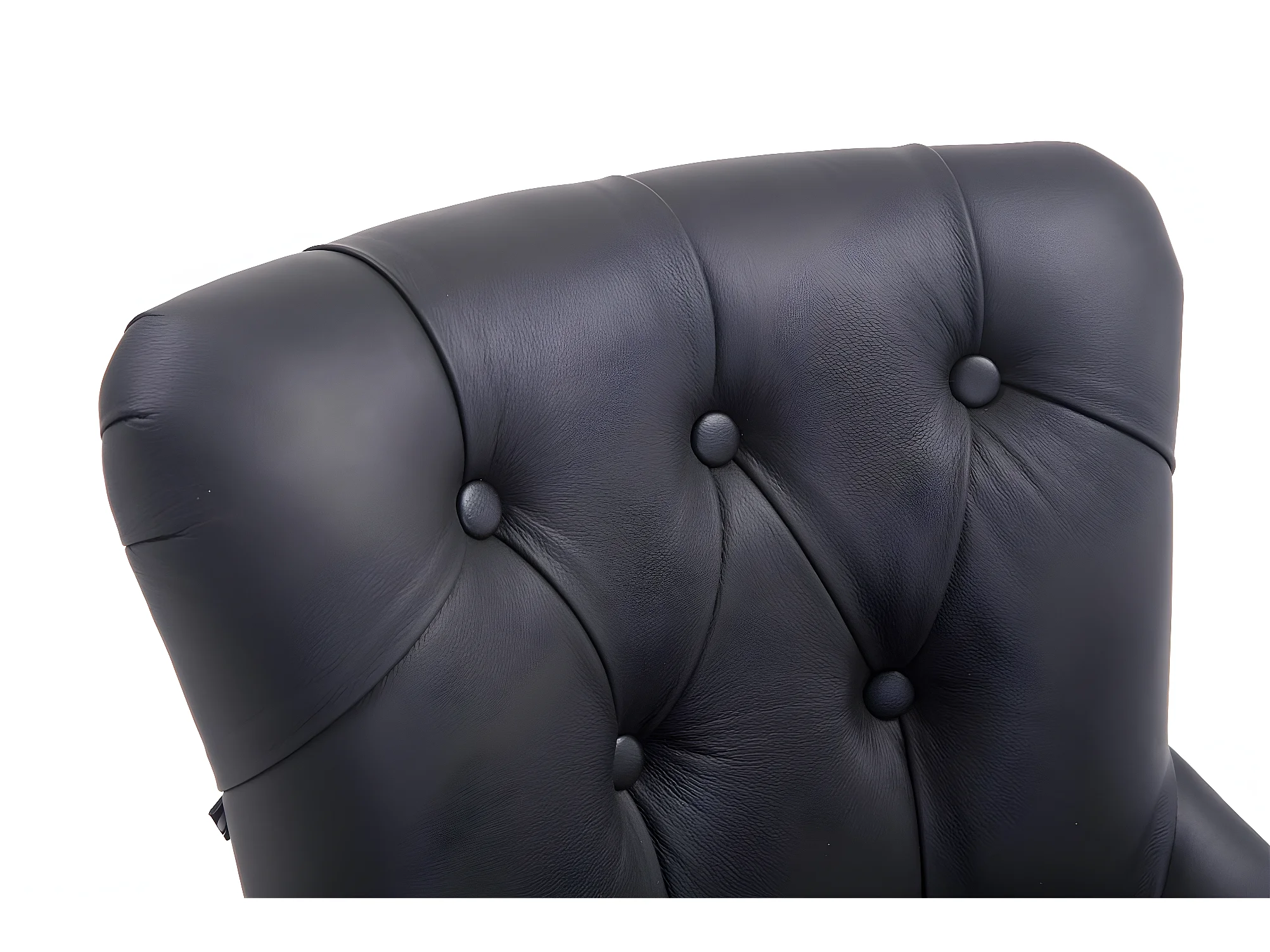 Lot de 2 Tabouret de bar - Véritable cuir & Bois - Noir - Lakewood