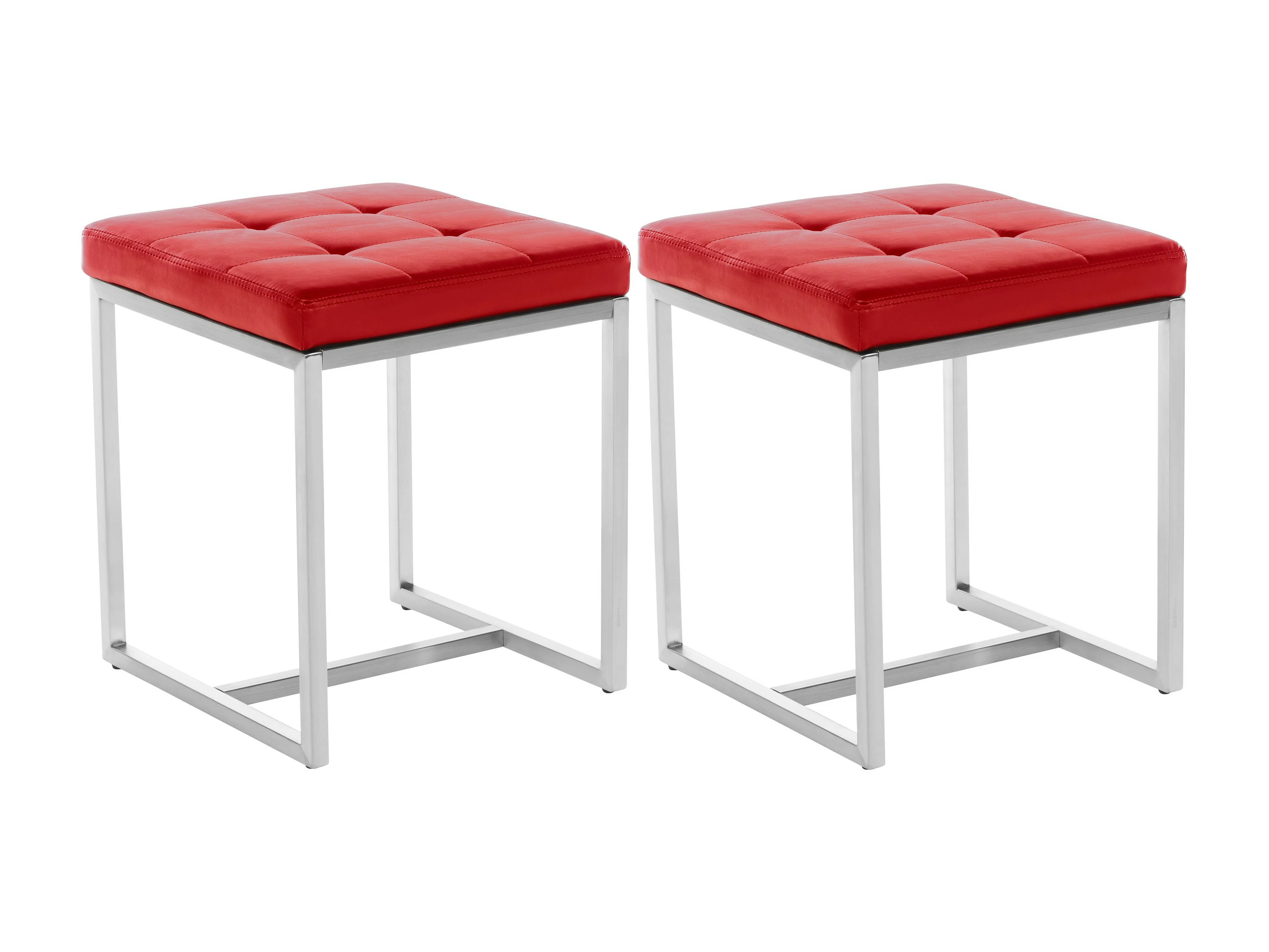 Lot de 2 Tabouret - Similicuir & Acier inoxydable - Rouge - Barci