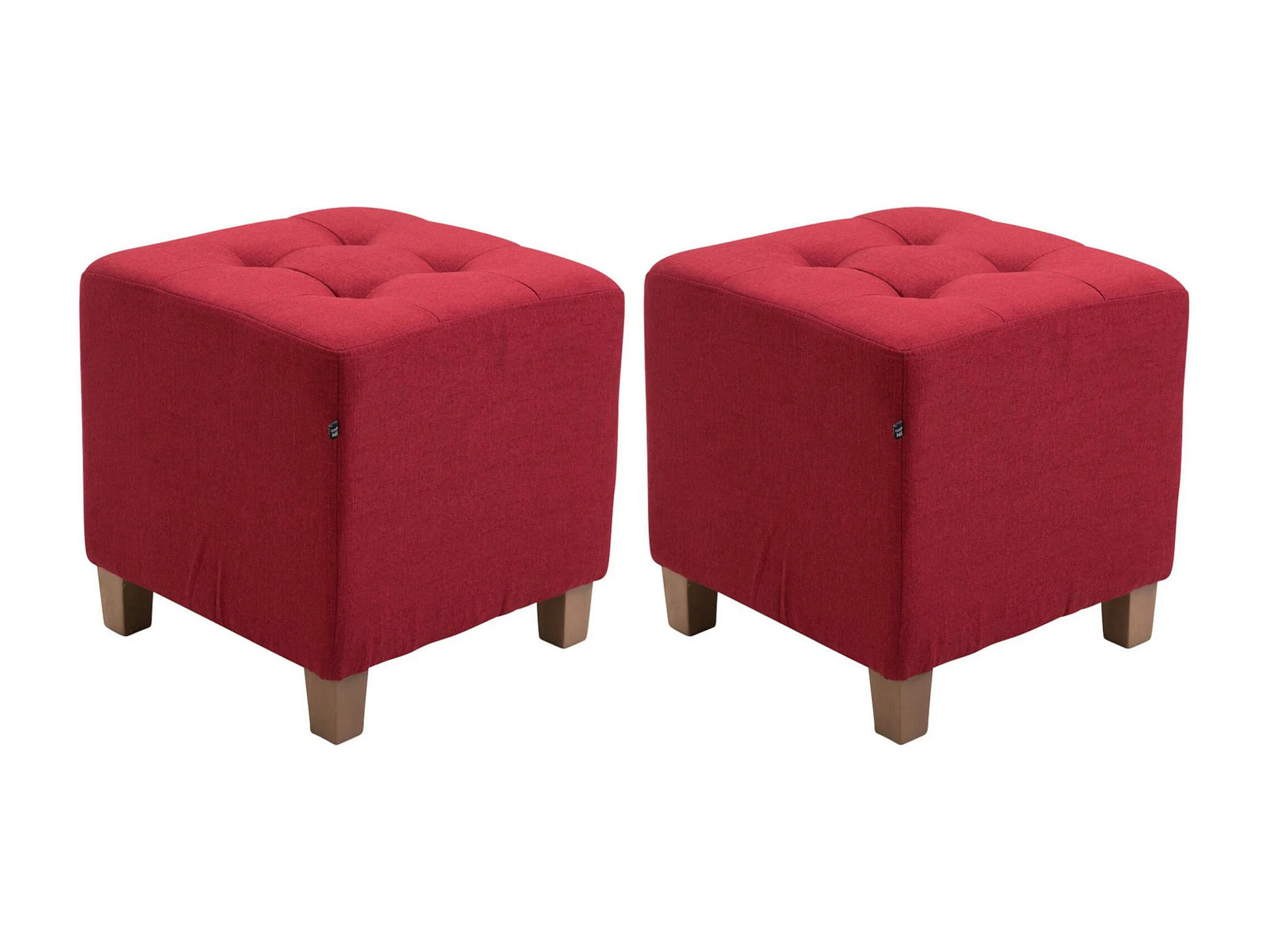 Lot de 2 Tabouret - Tissu & Bois - Rouge - Pharao