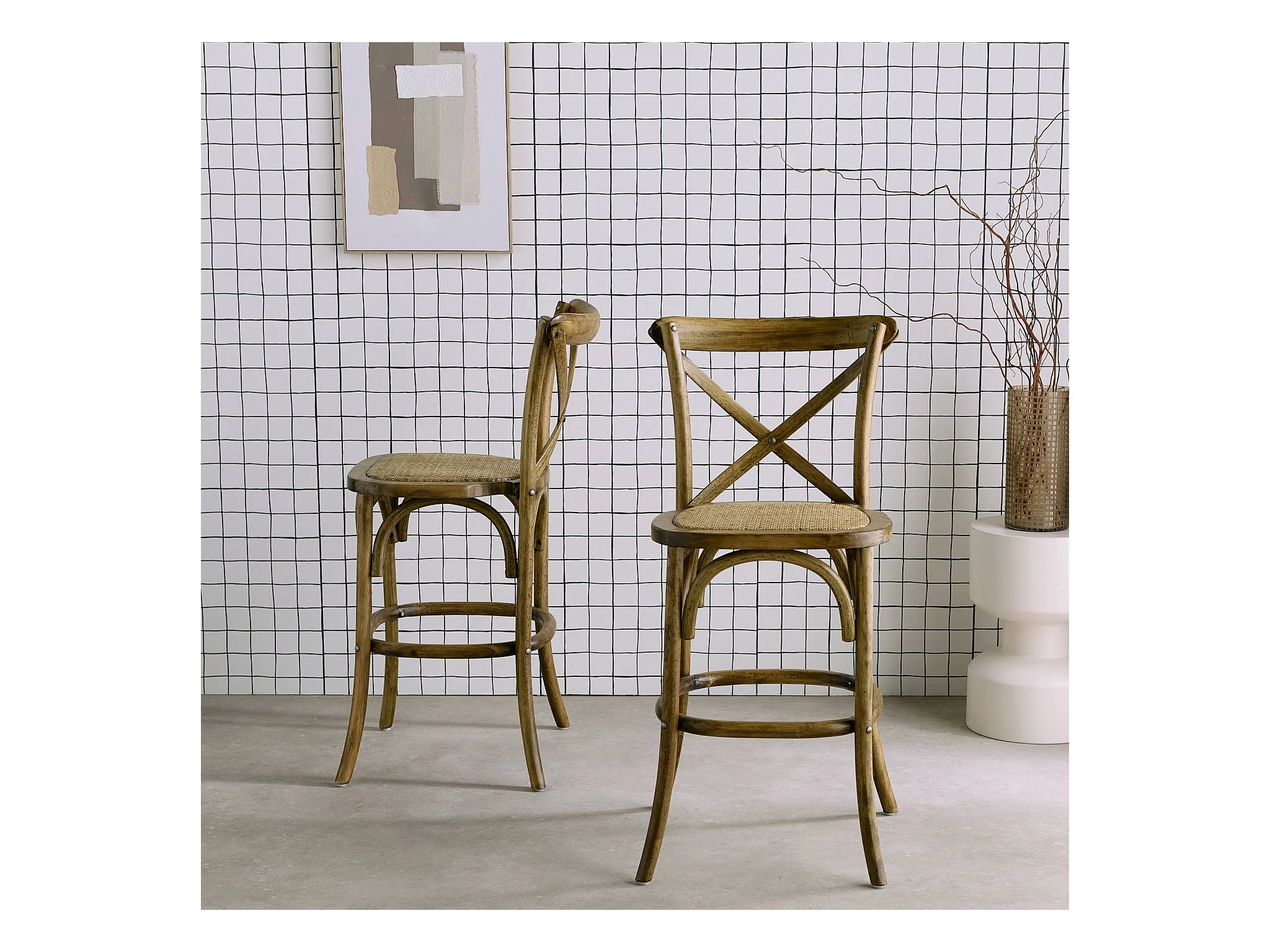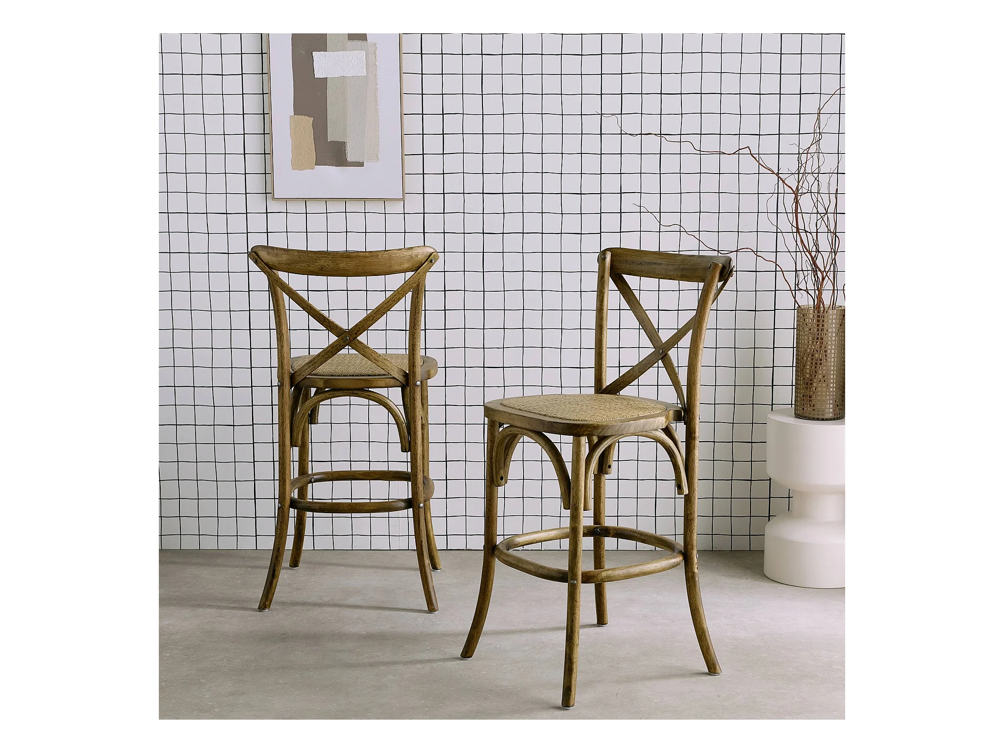 Lot de 2 tabourets de bar bistrot vintage en bois marron vieilli avec repose-pieds