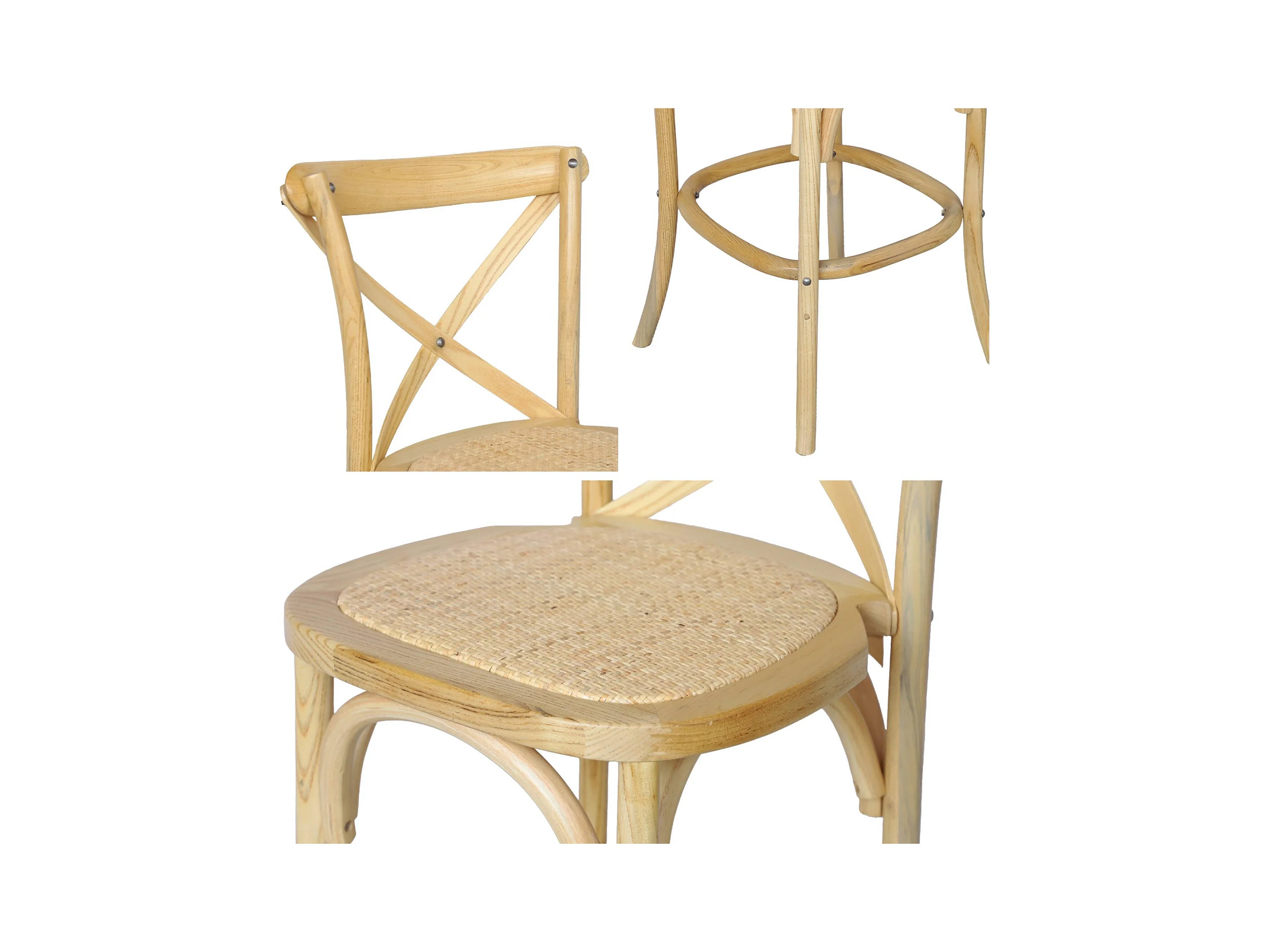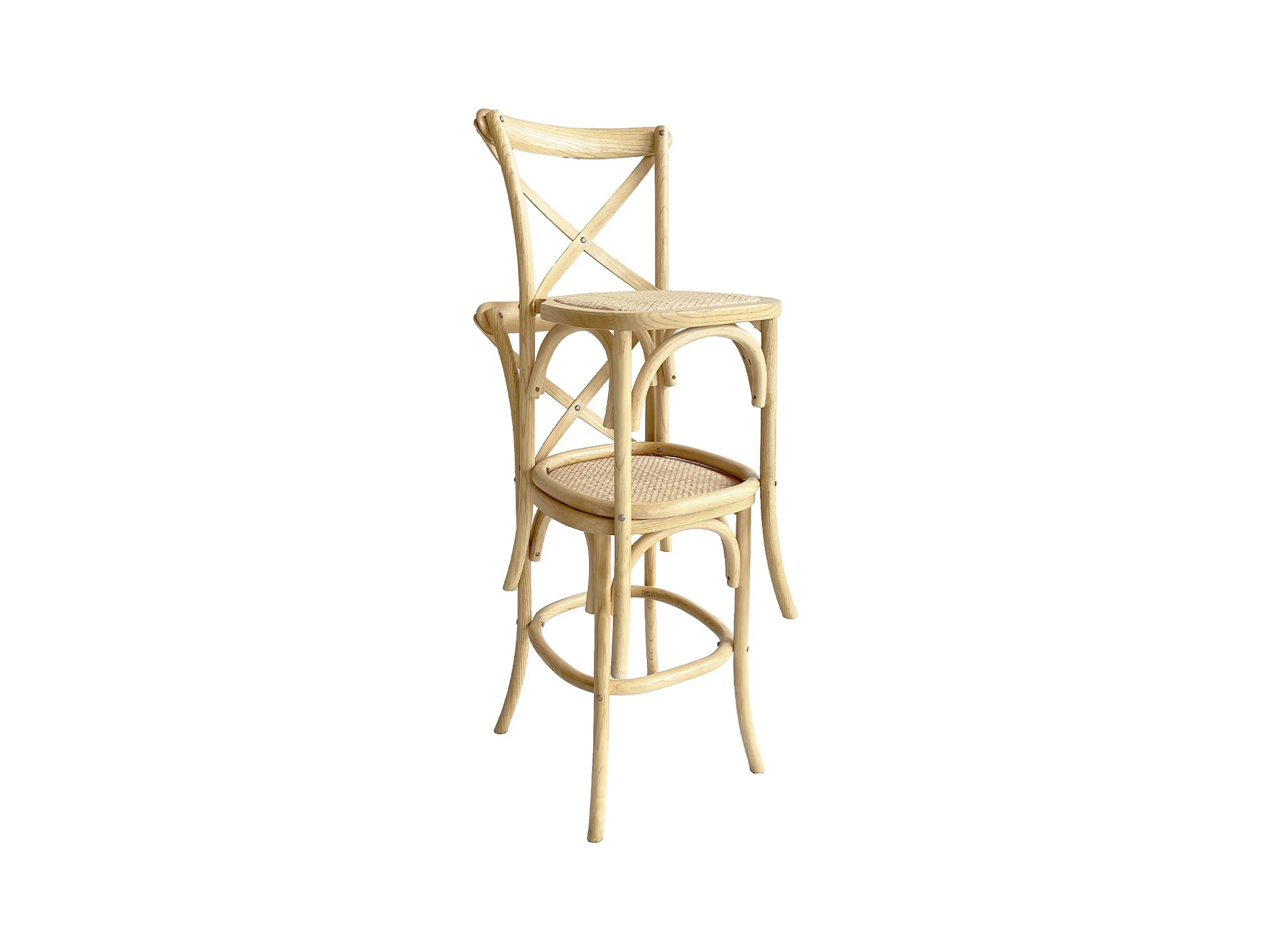 Lot de 2 tabourets de bar bistrot vintage en bois naturel avec repose-pieds
