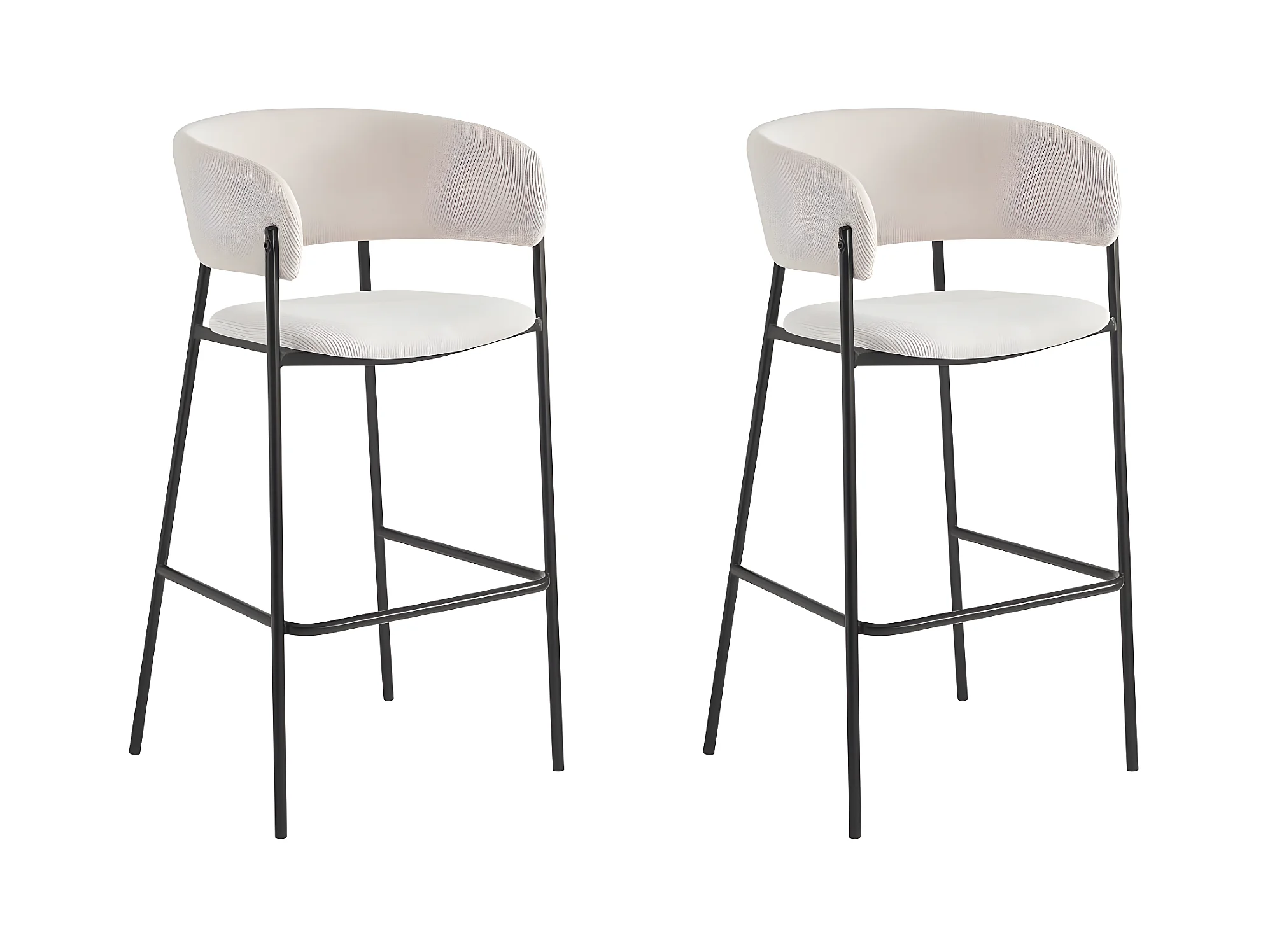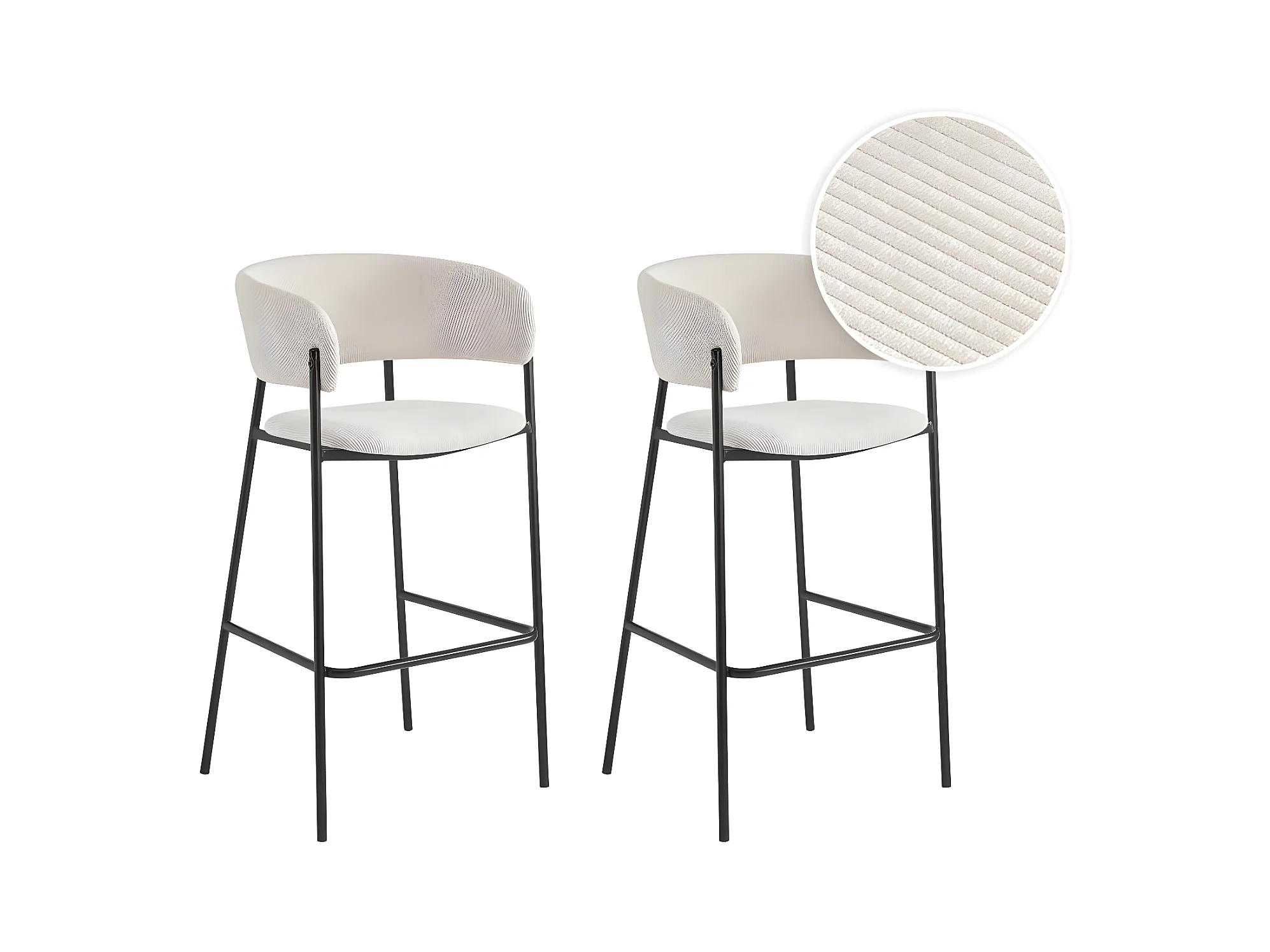 Lot de 2 tabourets de bar BOLD en velours côtelé avec pieds noirs - Beige