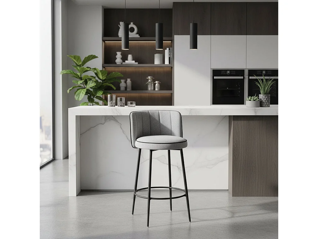 Lot 2 Tabourets de Bar Cathy Gris Pieds Métal Noir