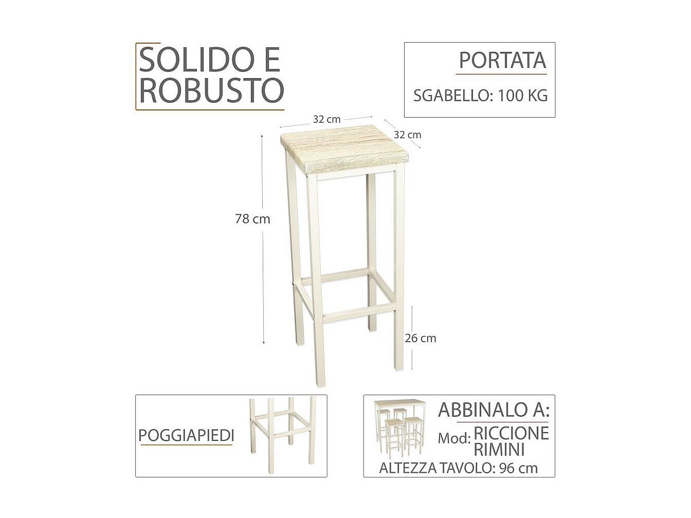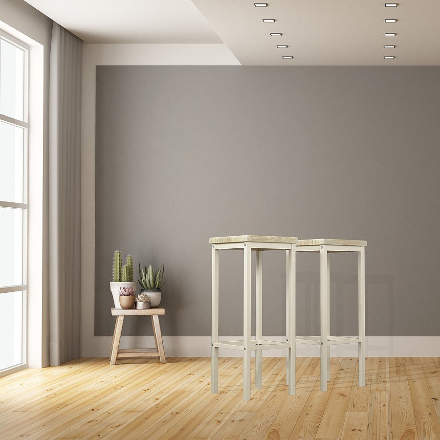 Lot de 2 tabourets de bar de 78 cm de hauteur en chêne clair beige mod. RICCIONE RIMINI par Yelloo