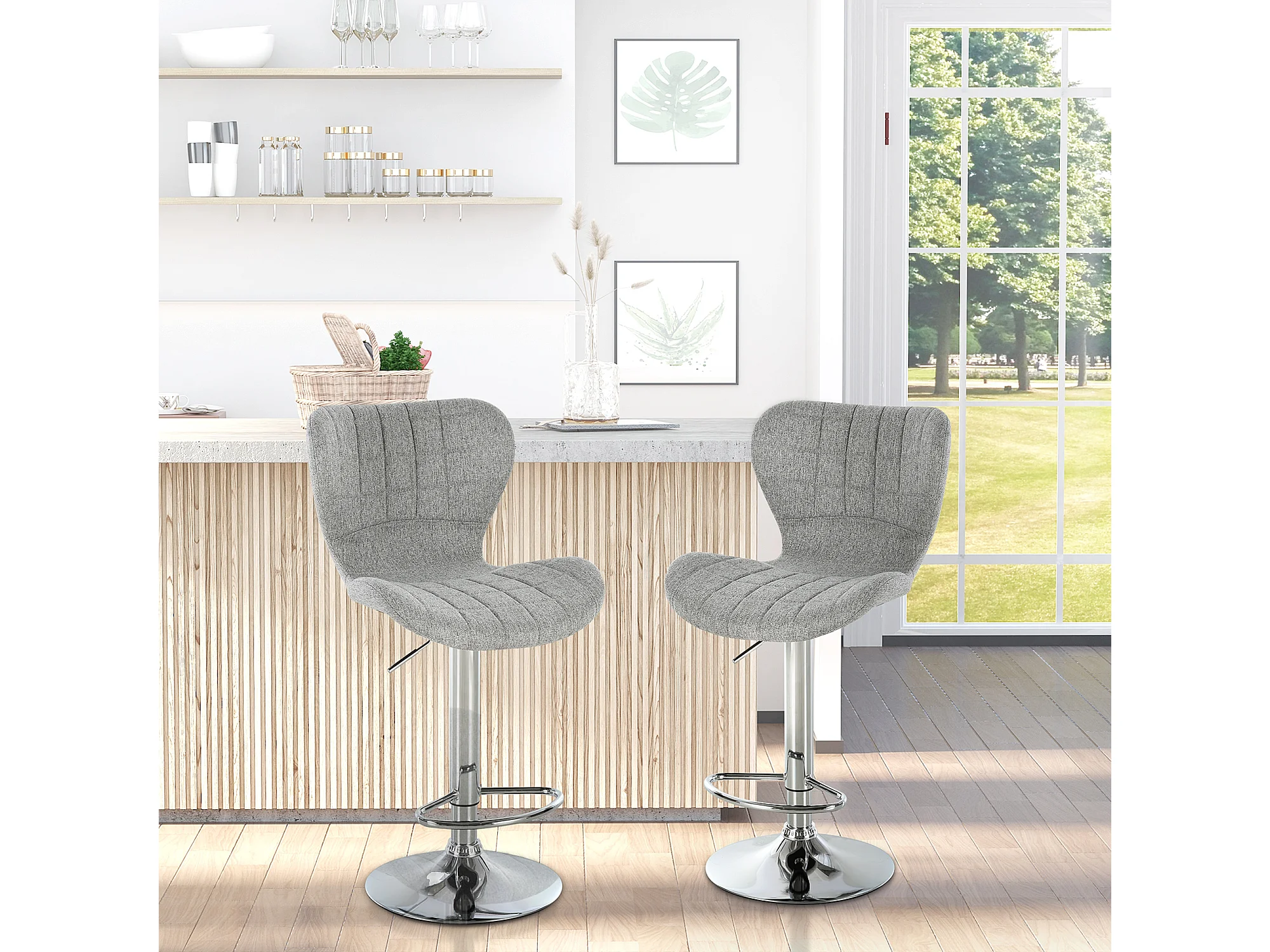 Lot 2 chaises de bar tissu gris clair avec piètement métal – MONTREAL
