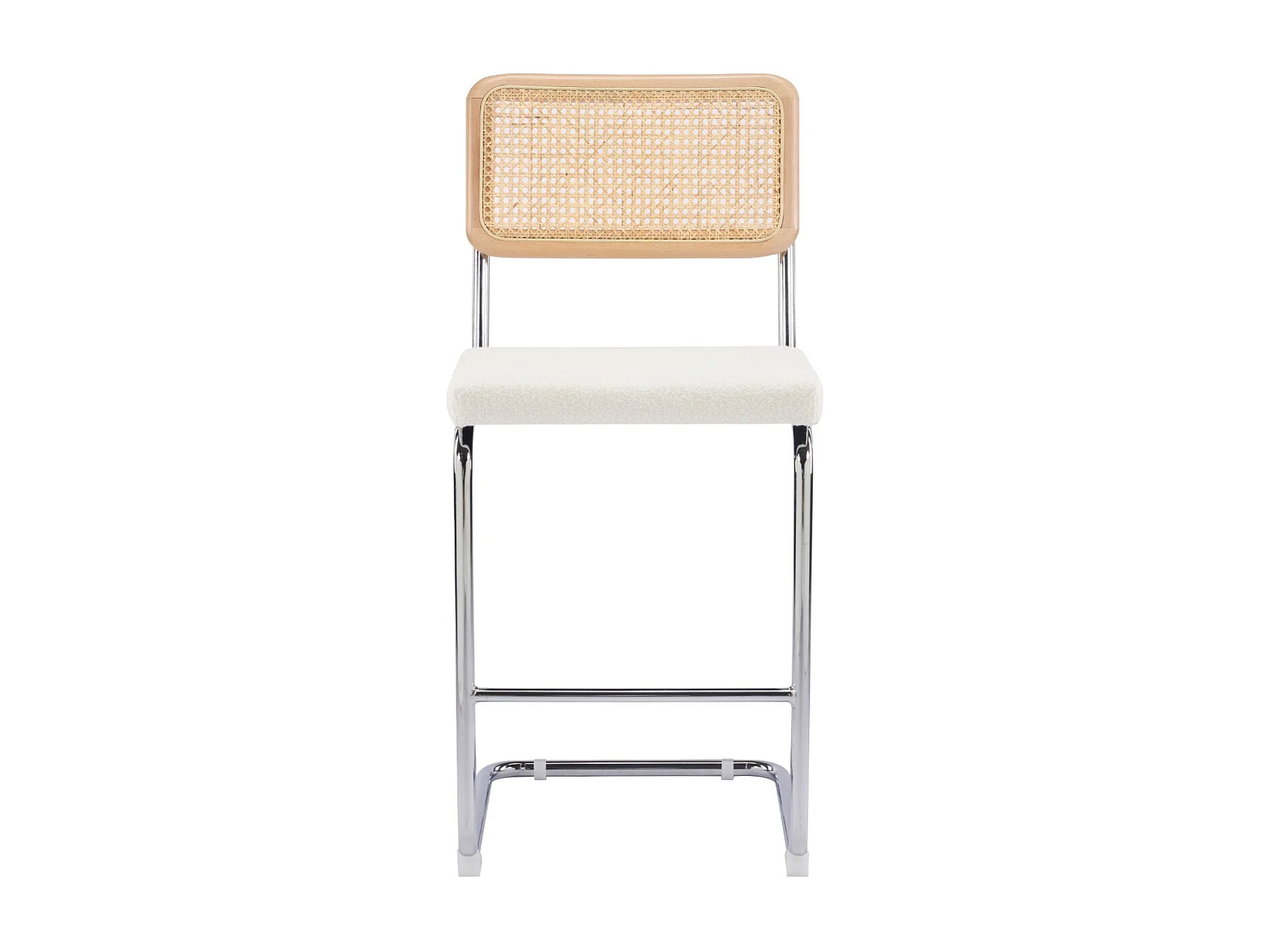 Lot de 2 tabourets de bar en cannage et tissu bouclé beige - Muse