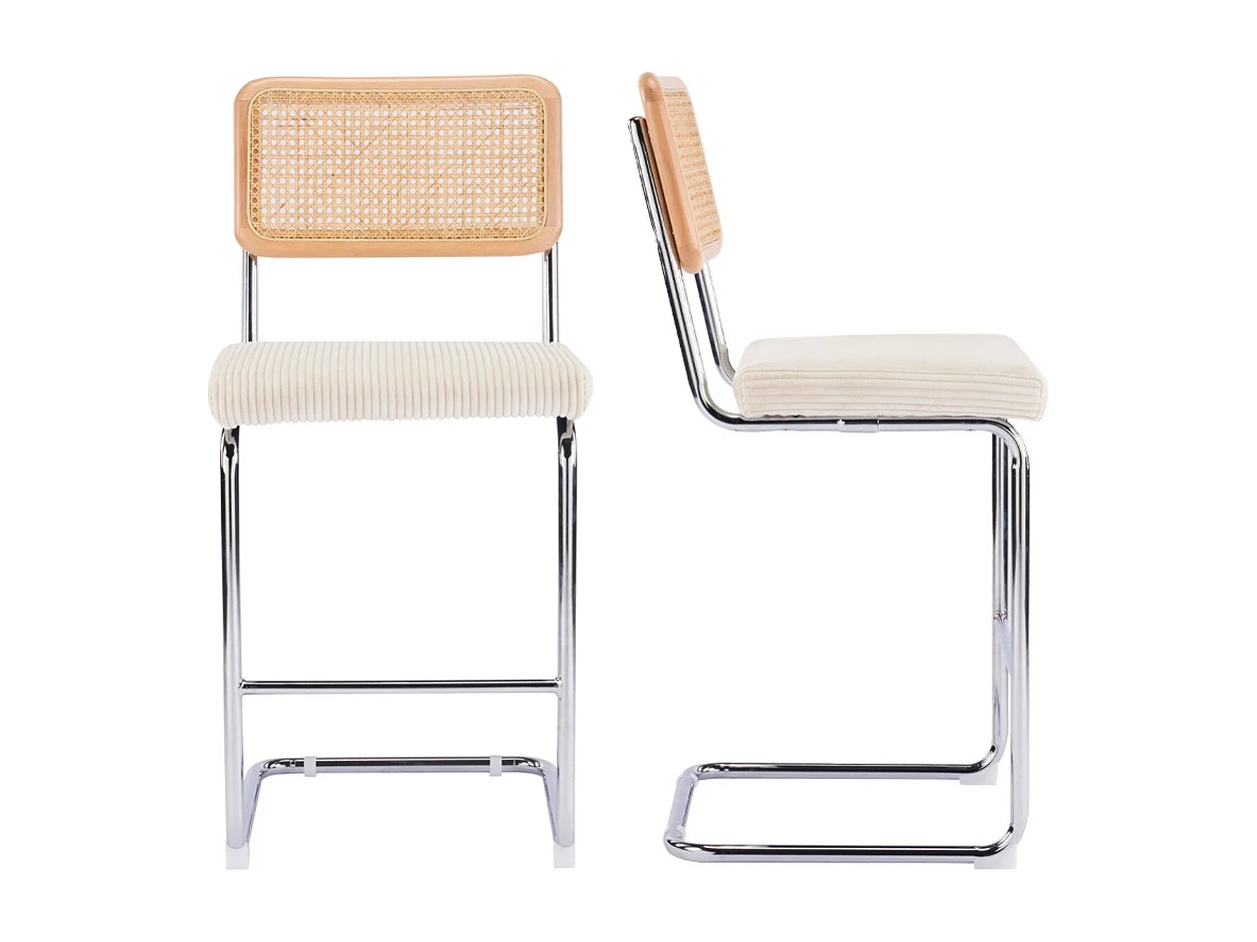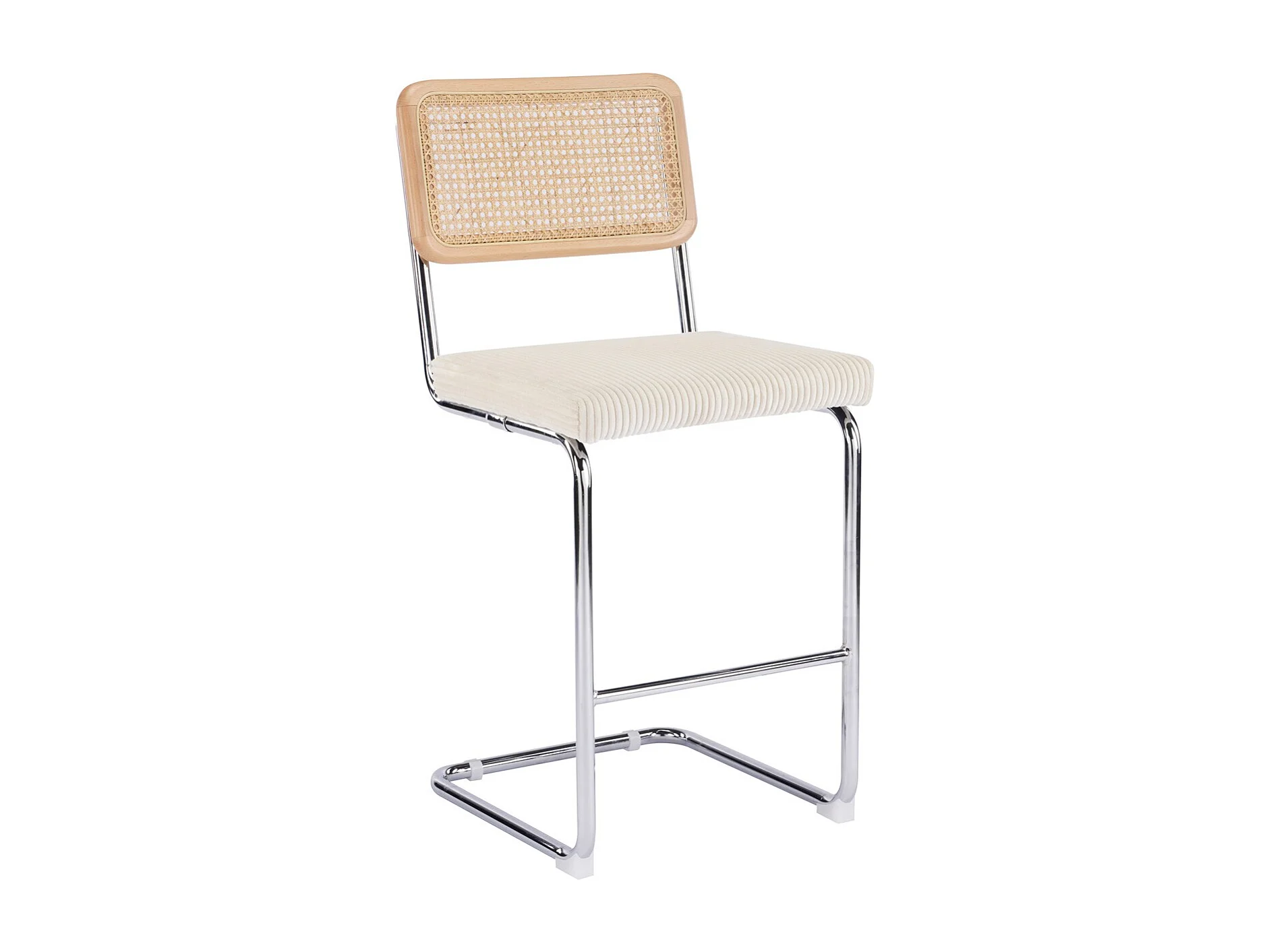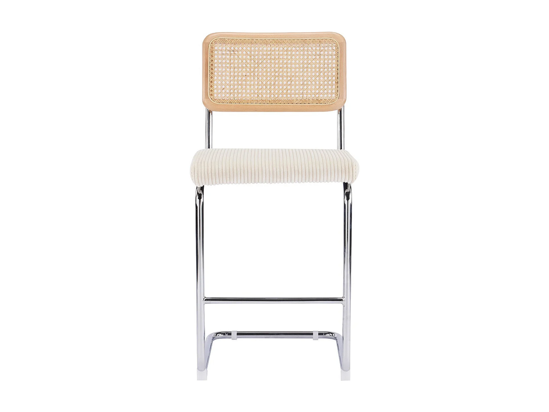 Lot de 2 tabourets de bar en cannage et velours côtelé beige - Muse