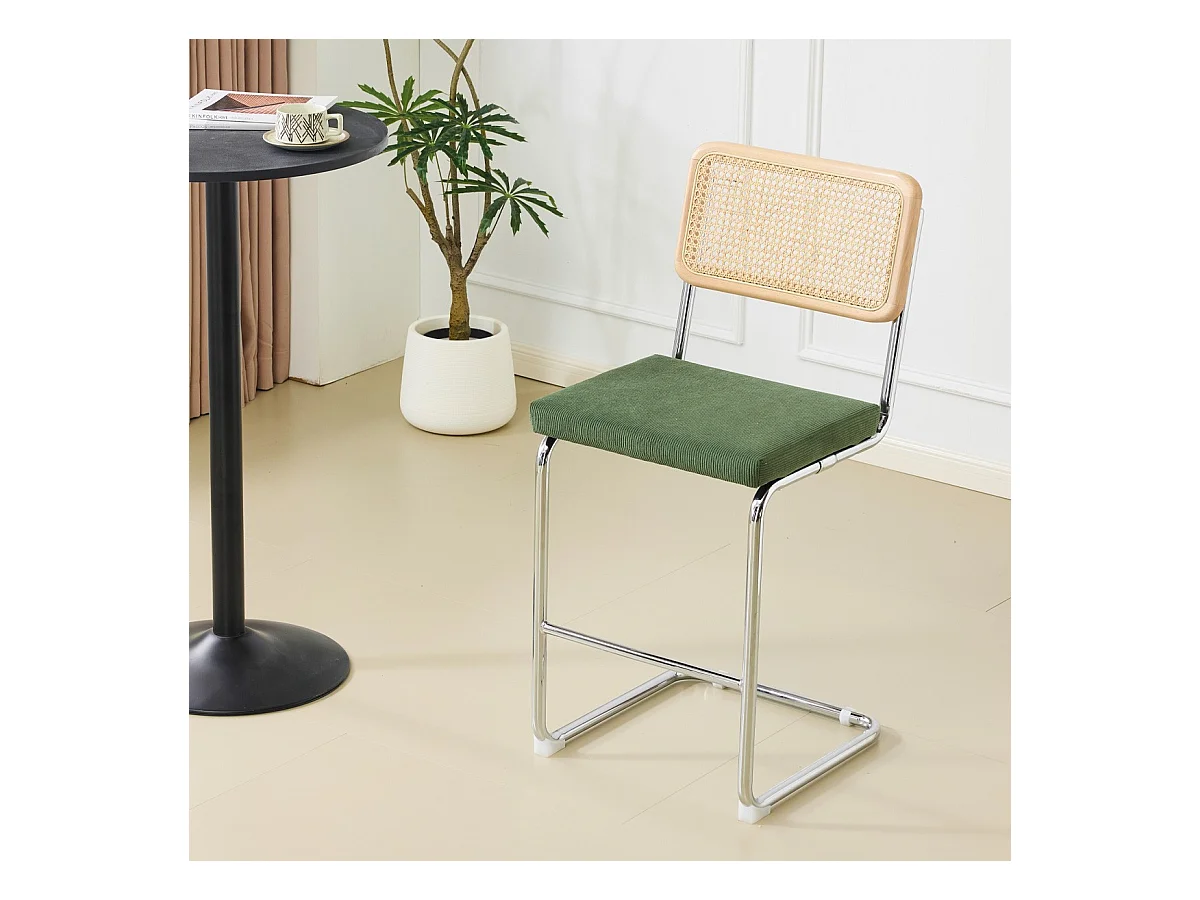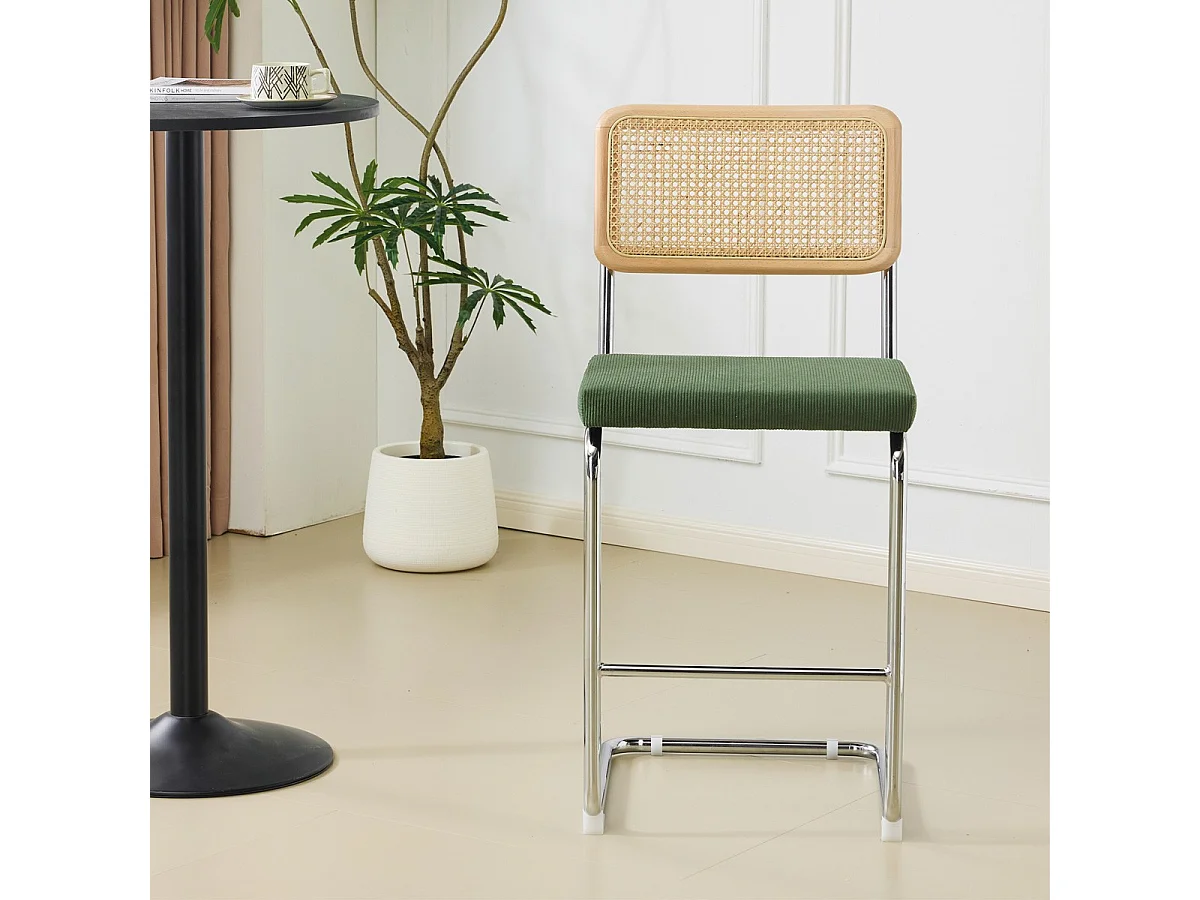 Lot de 2 tabourets de bar en cannage et velours côtelé vert kaki - Muse