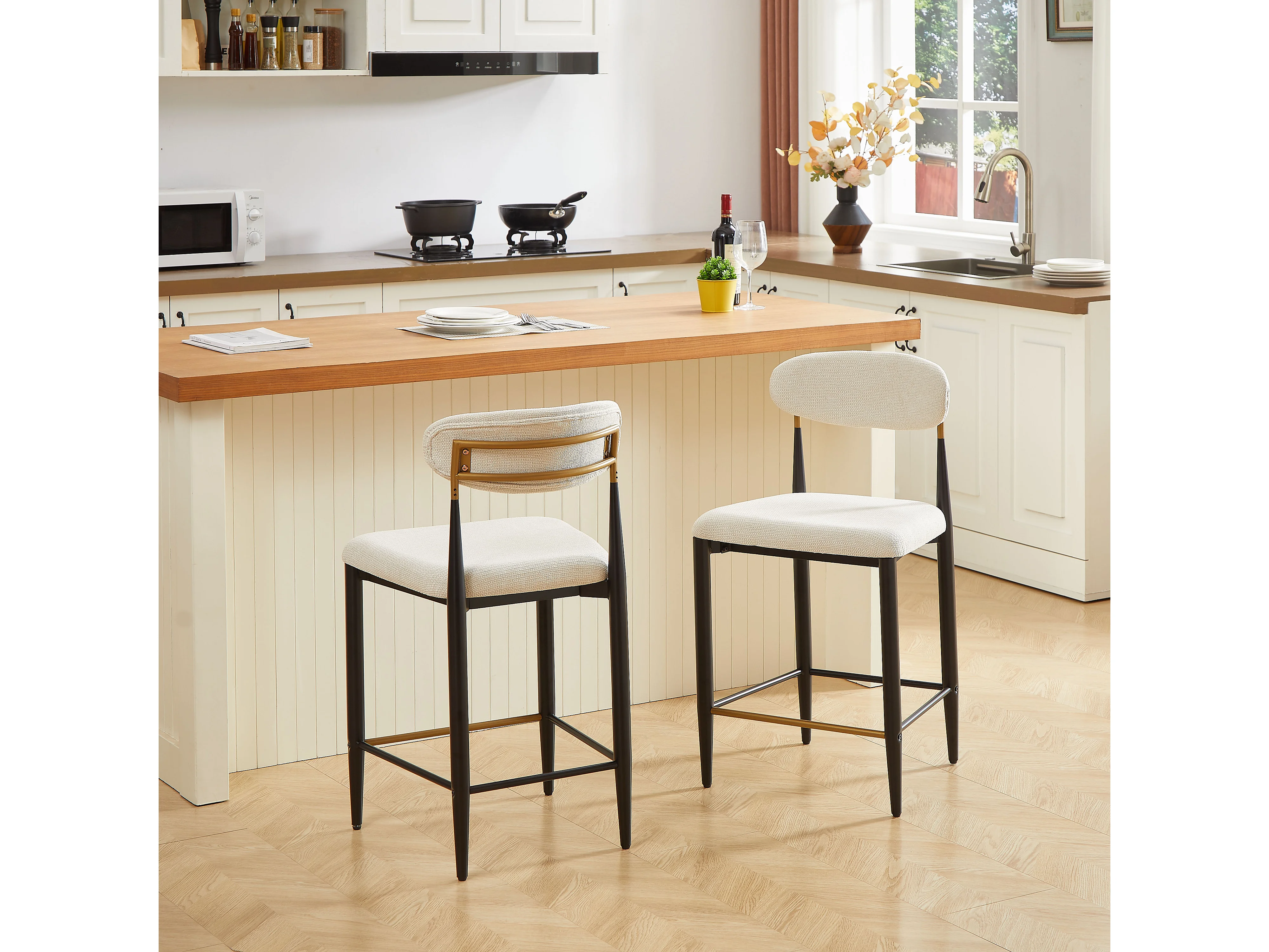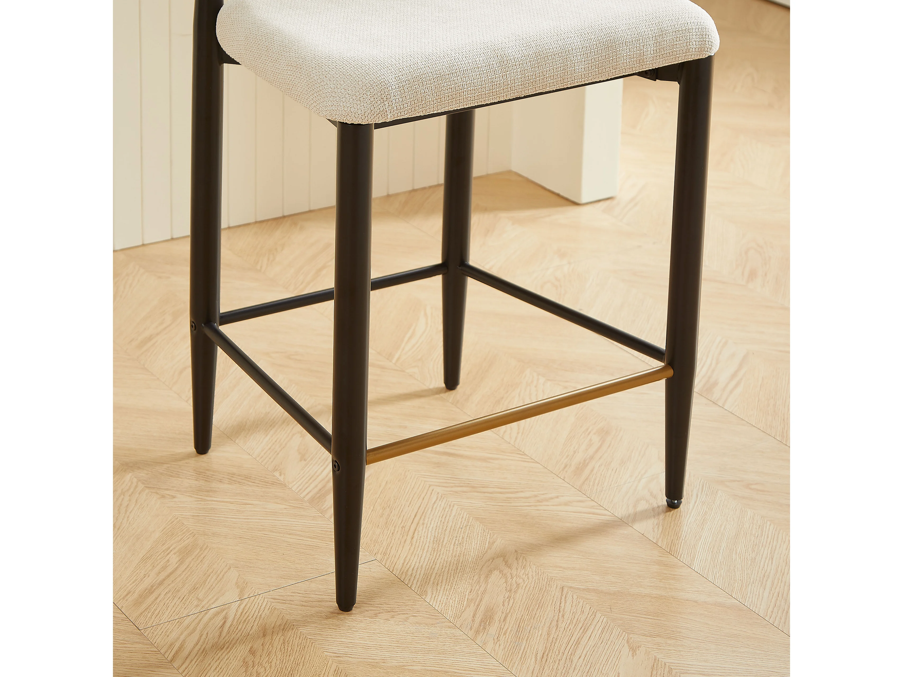 Lot de 2 tabourets de bar en tissu beige - Cadre en métal noir et marron