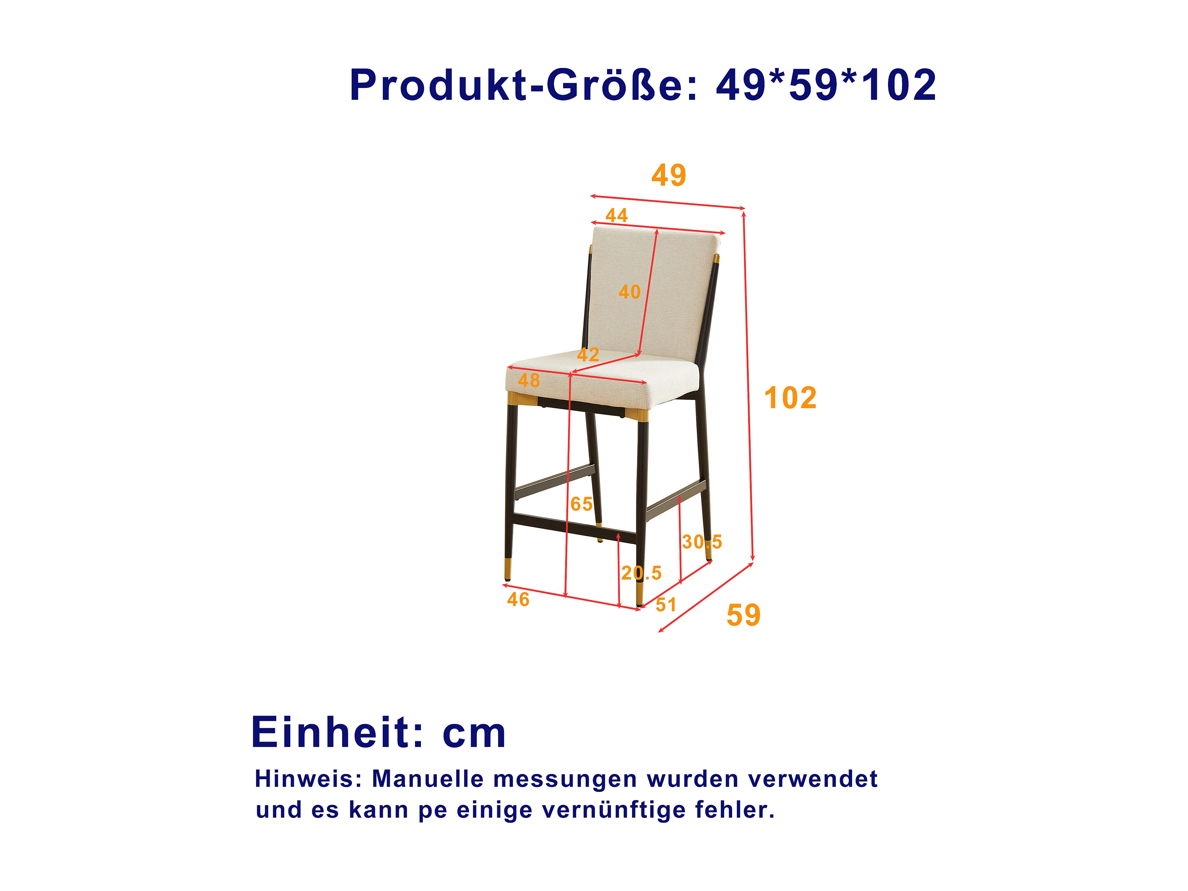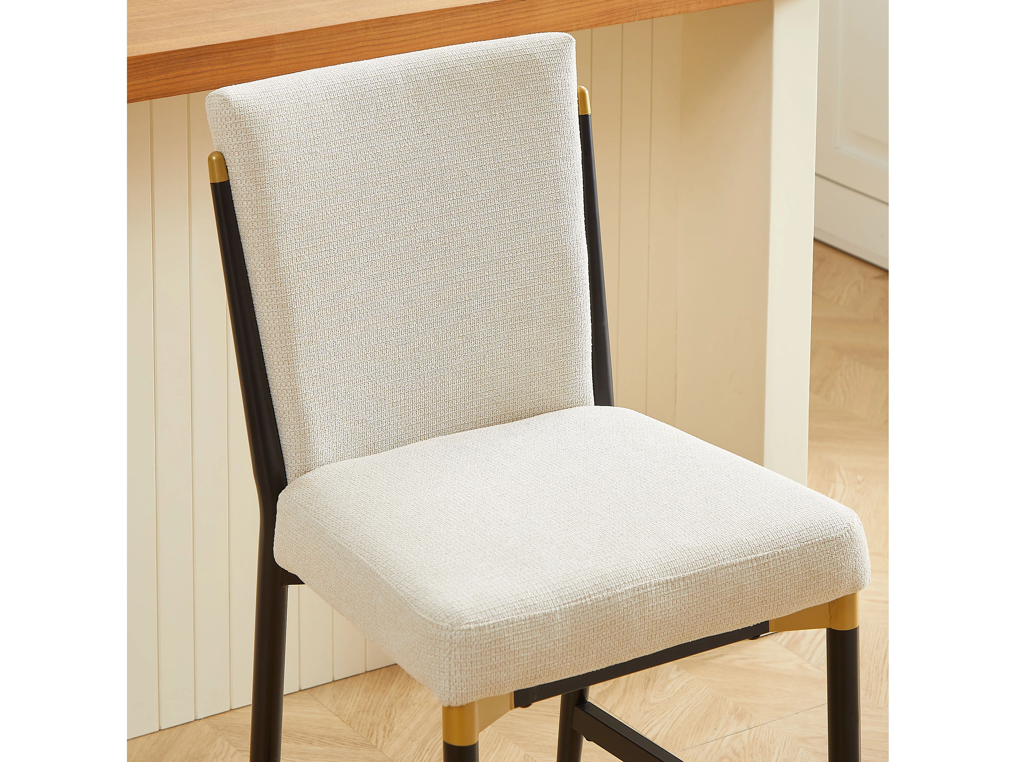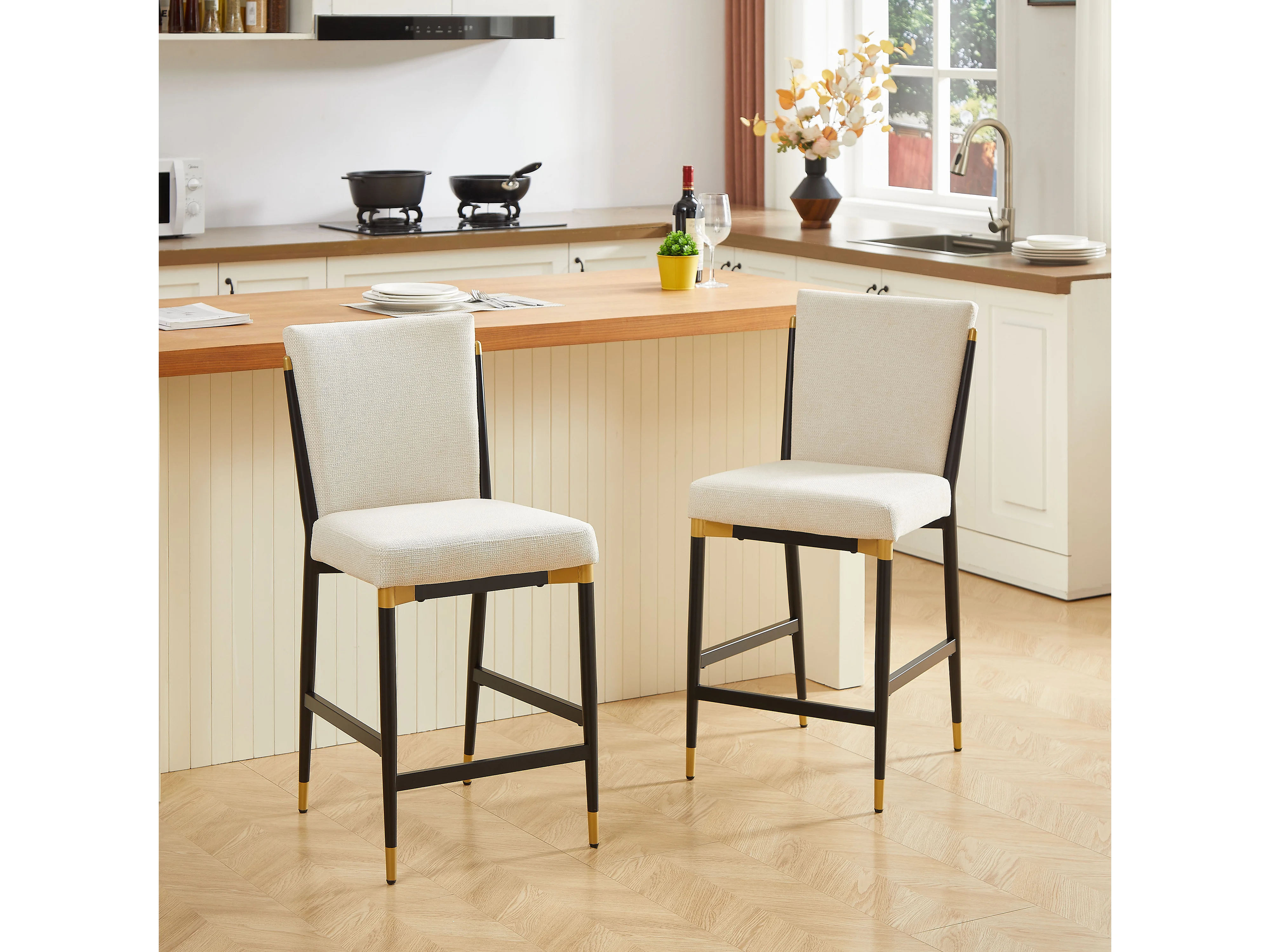Lot de 2 tabourets de bar en tissu beige - Cadre en métal noir et or