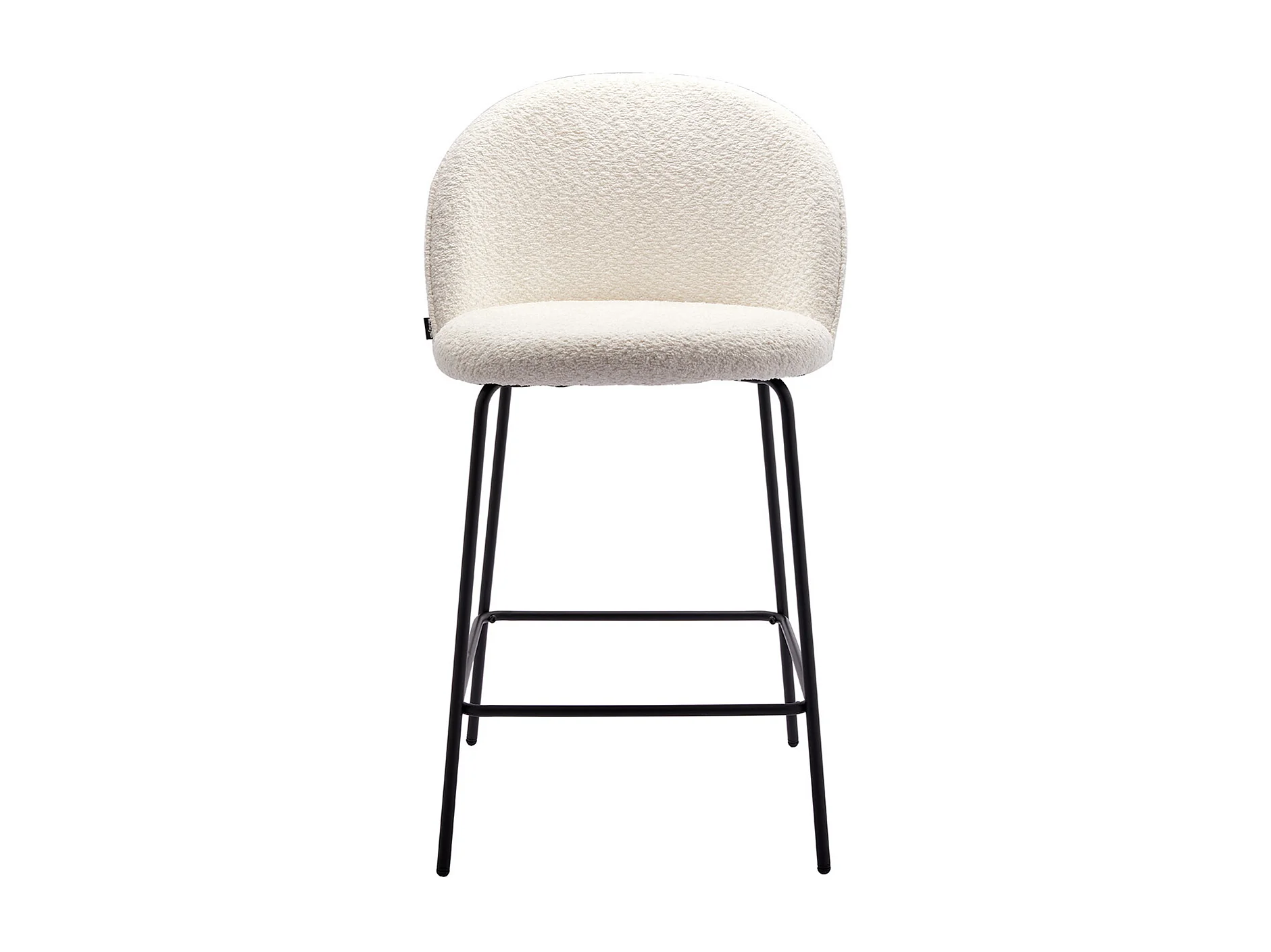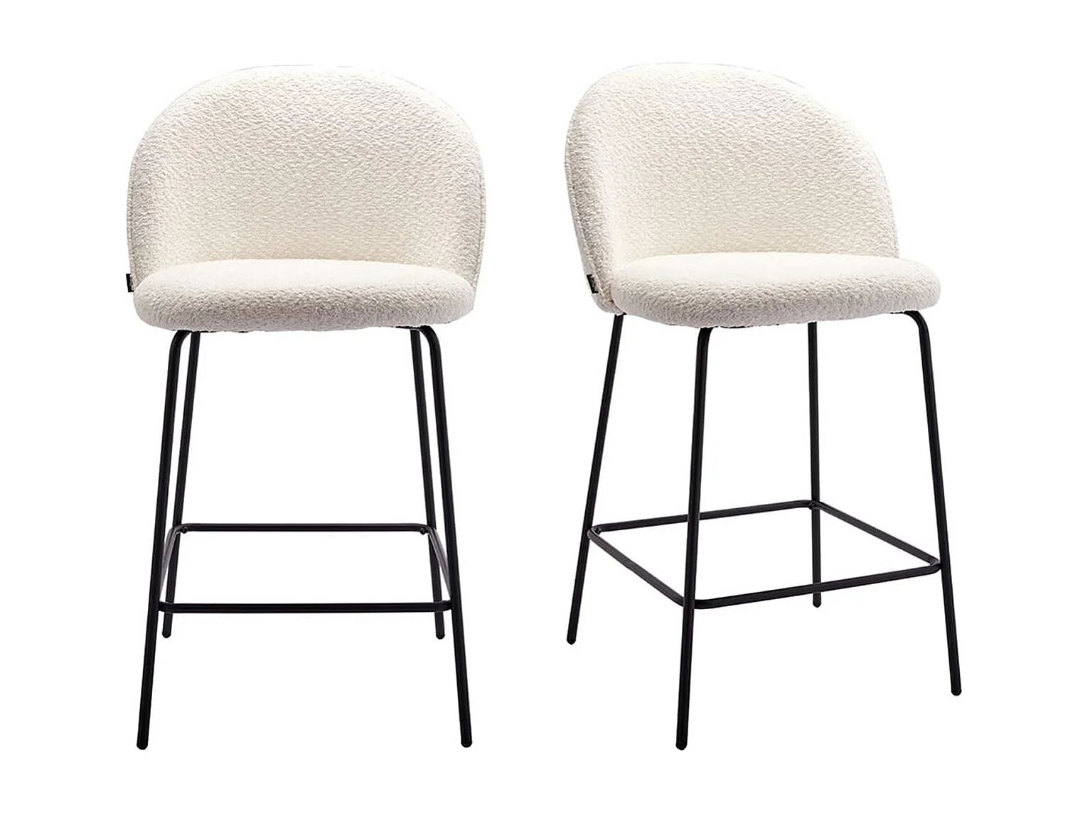 Lot de 2 tabourets de bar en tissu bouclette écru, piètement noir - Alta