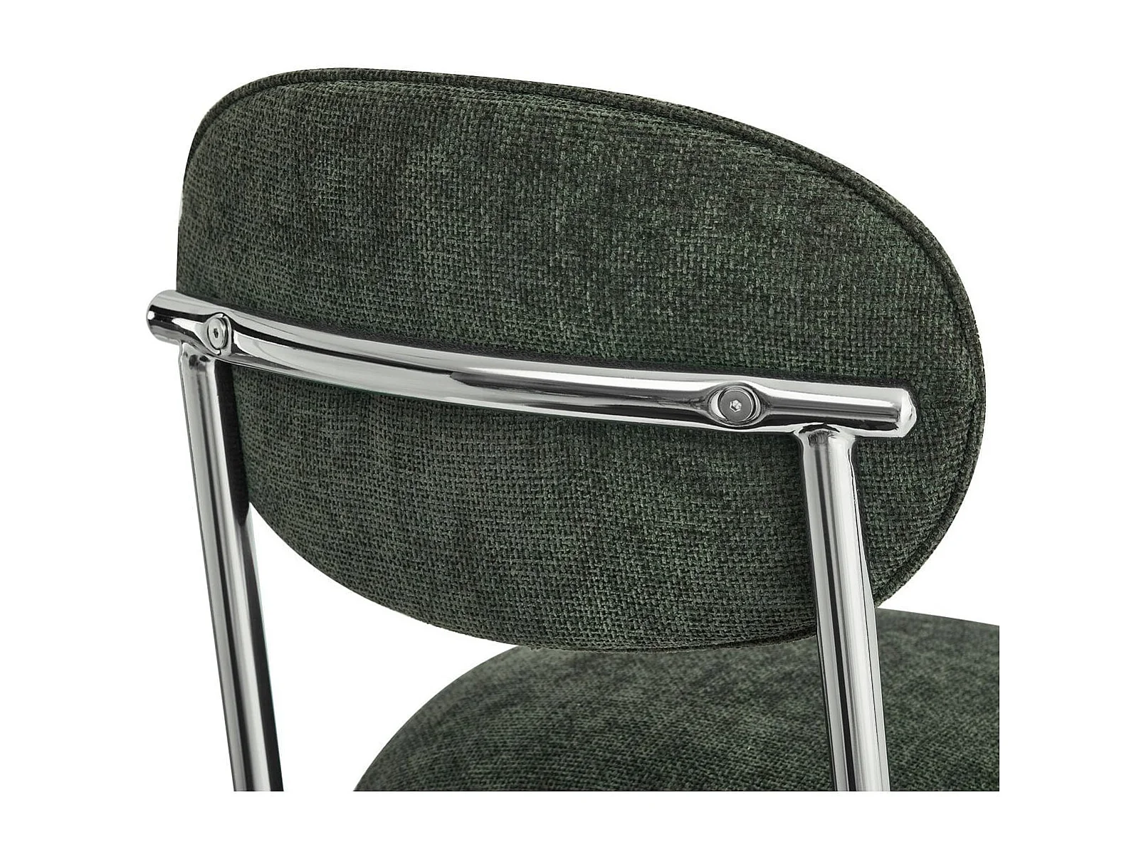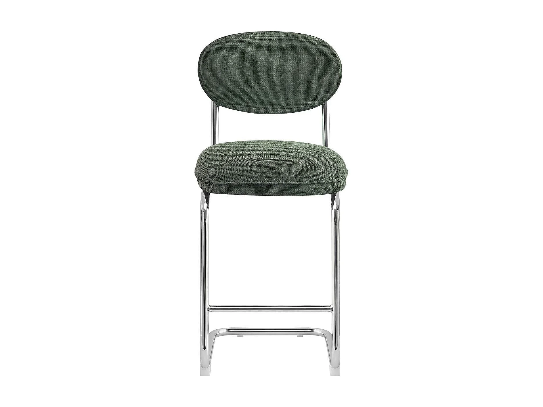 Lot de 2 tabourets de bar en tissu chenille vert, piètement chromé - Lou