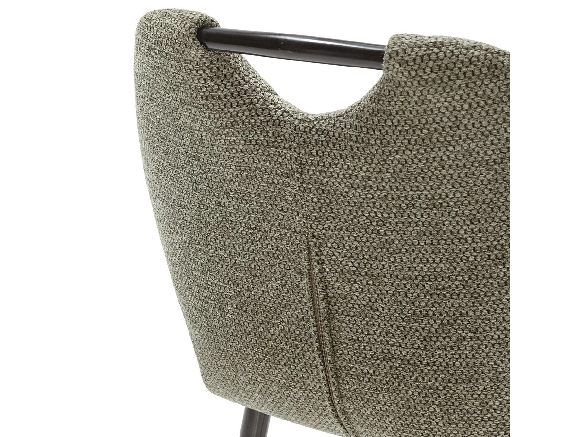 Lot de 2 tabourets de bar en tissu polyester maillé vert avec poignée et pieds en métal laqué noir - MILDA